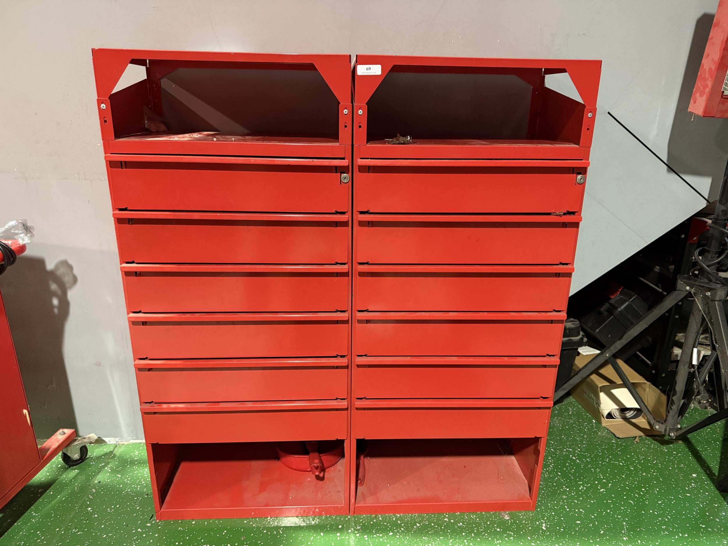 Two Wurth six drawer cabinets fitted a shelf above and below (contents included)