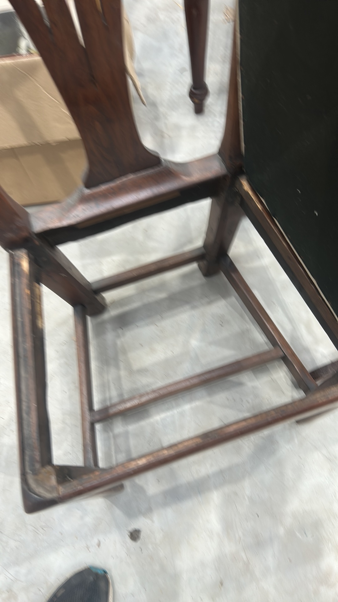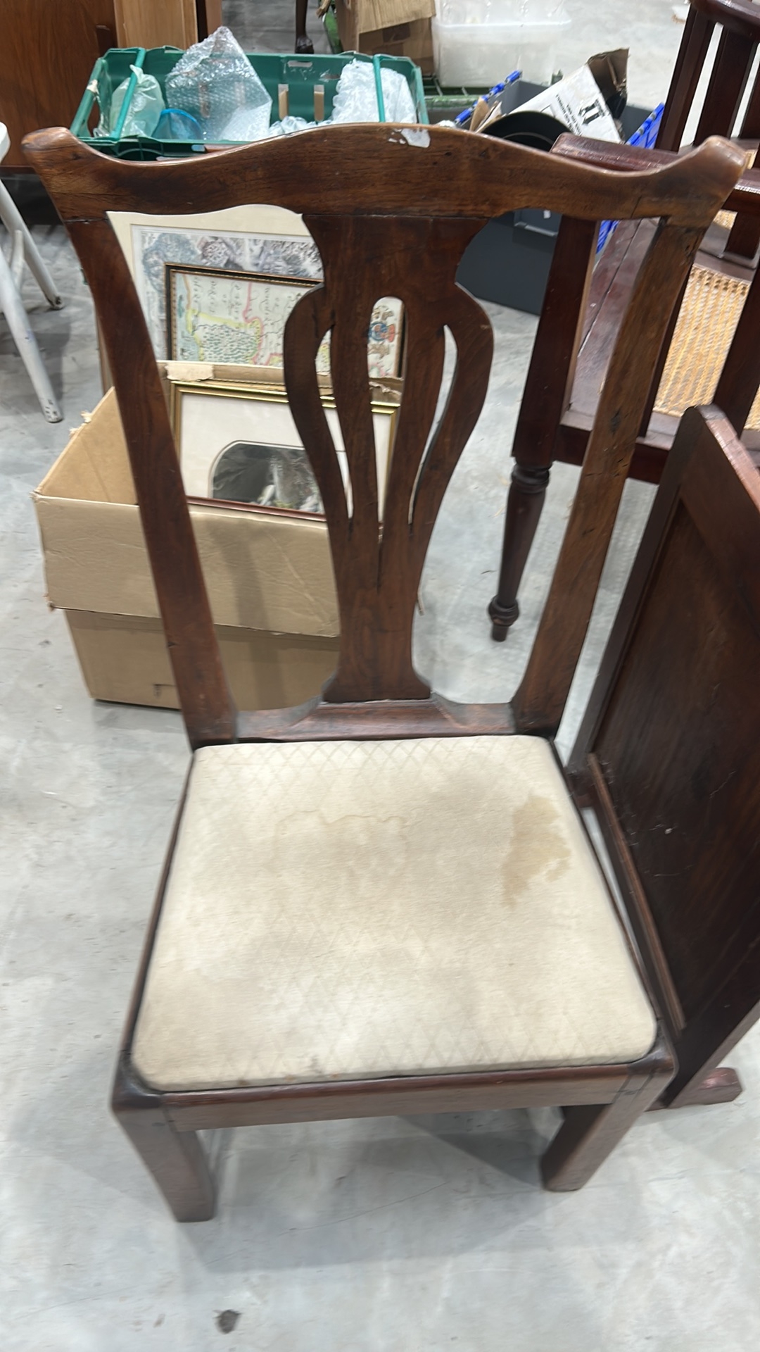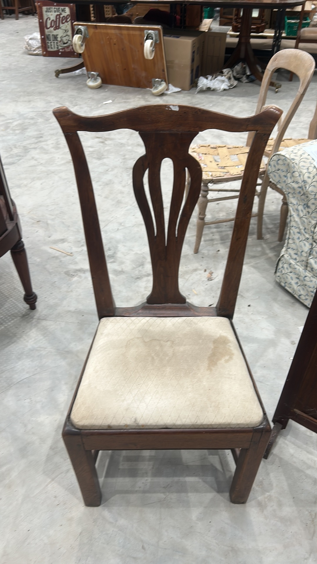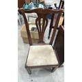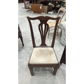 Mahogany side chair, Georgian style, pierced splat back, drop-in upholstered seat, square legs joined by H-stretcher.