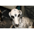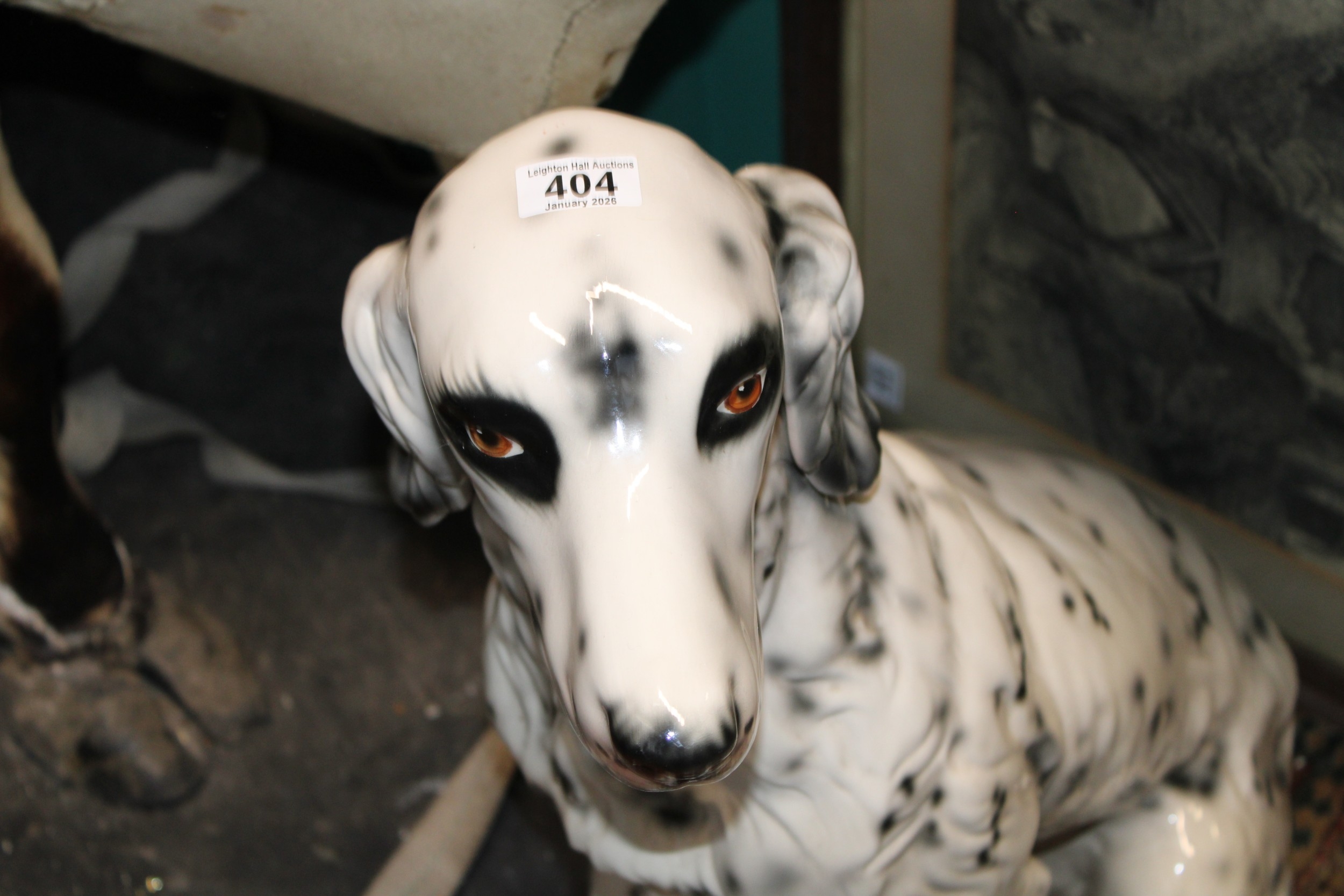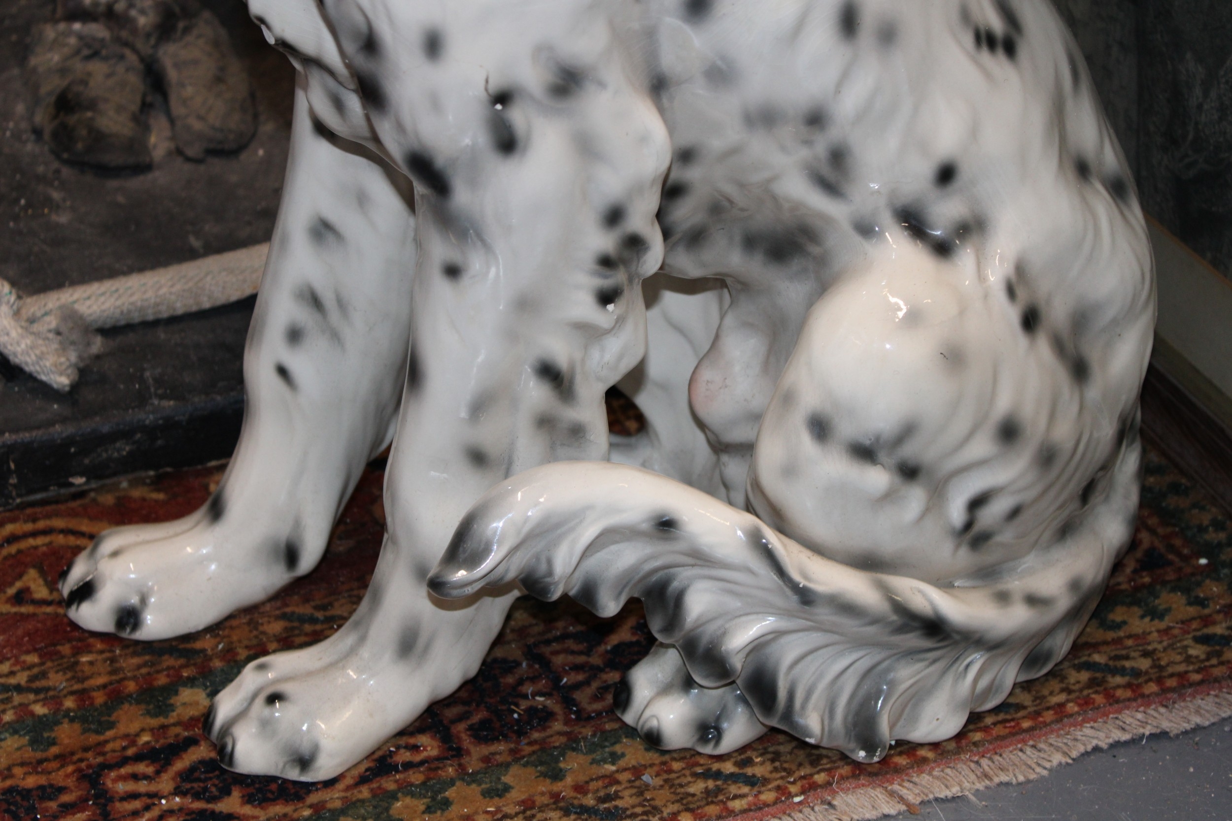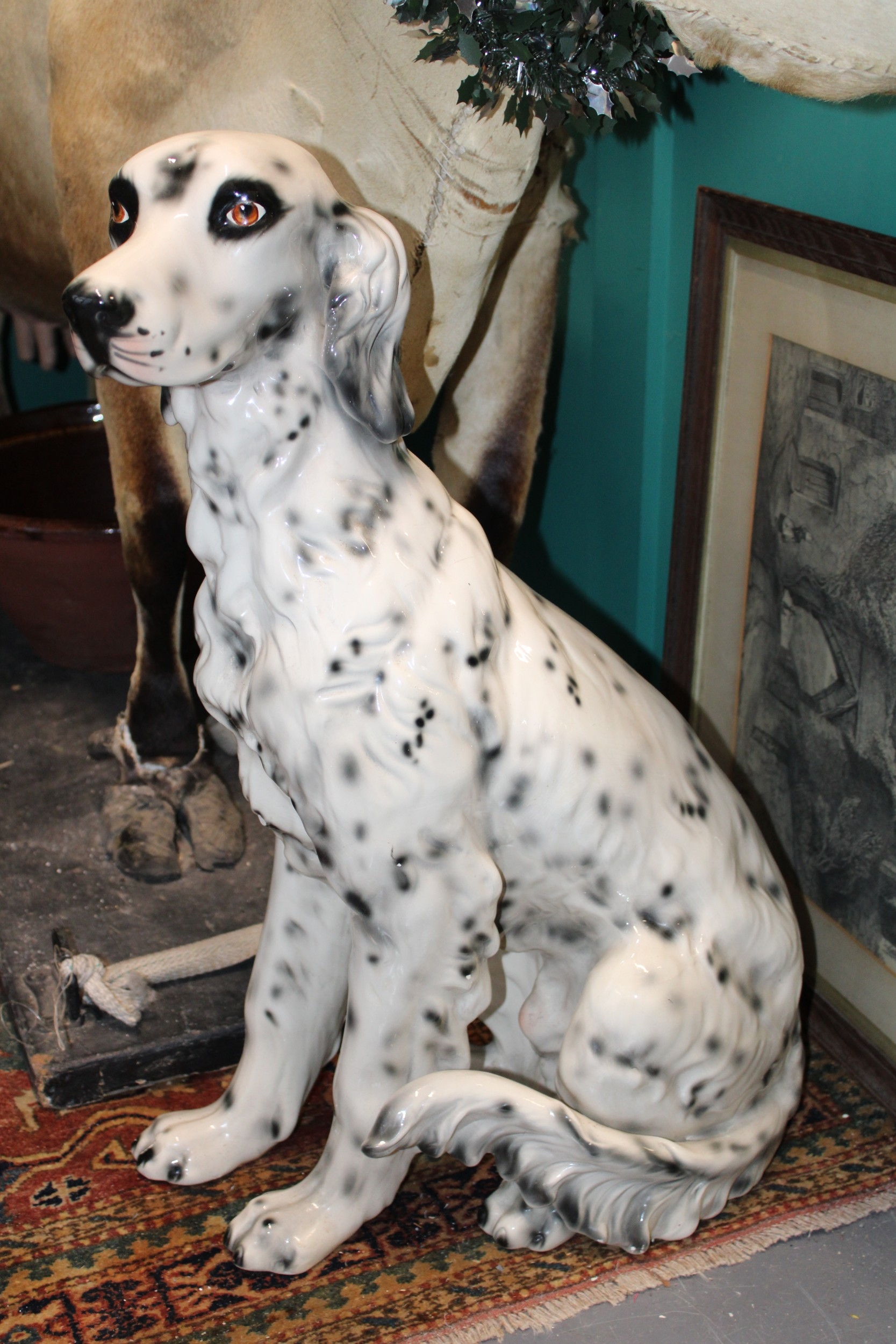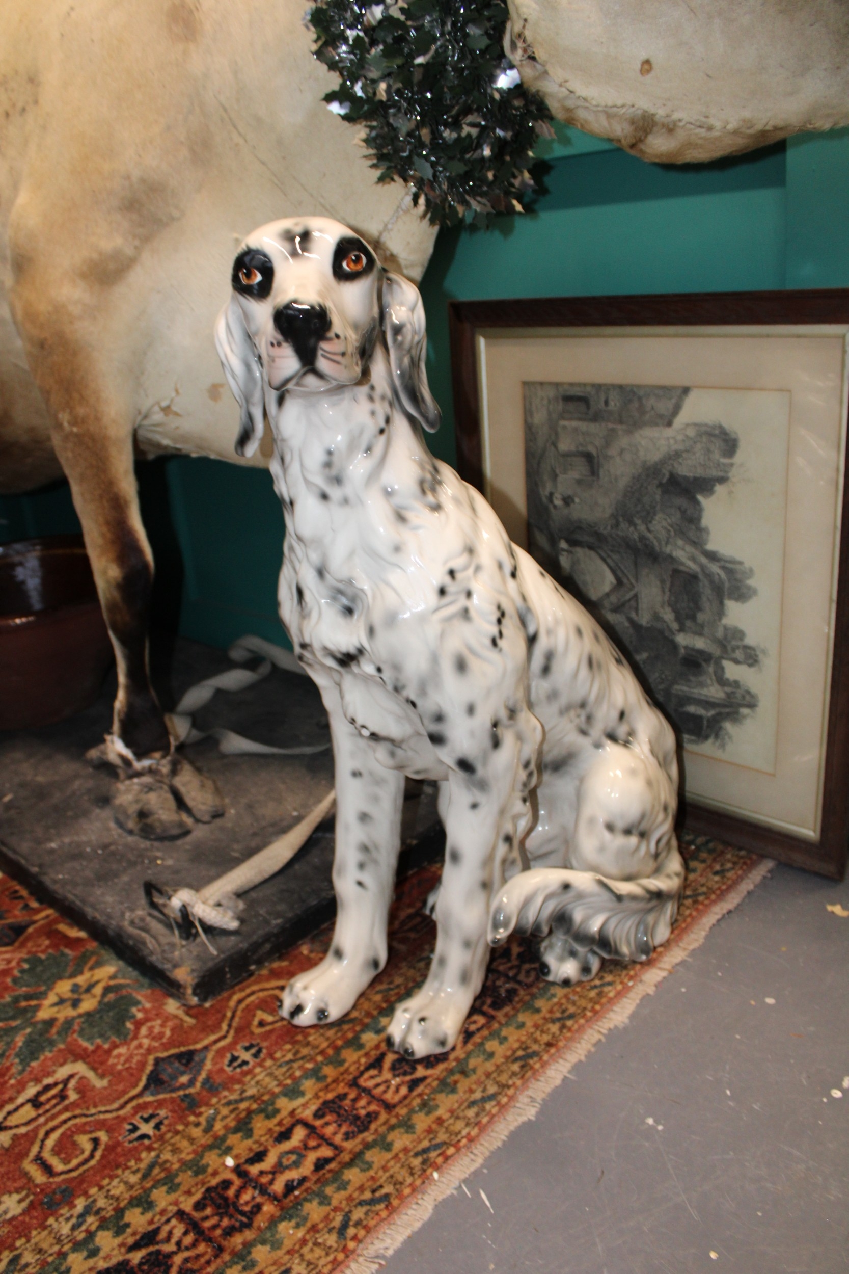 A large lifesize pottery model of a dog, possibly a setter, 75cm tall, collection only.