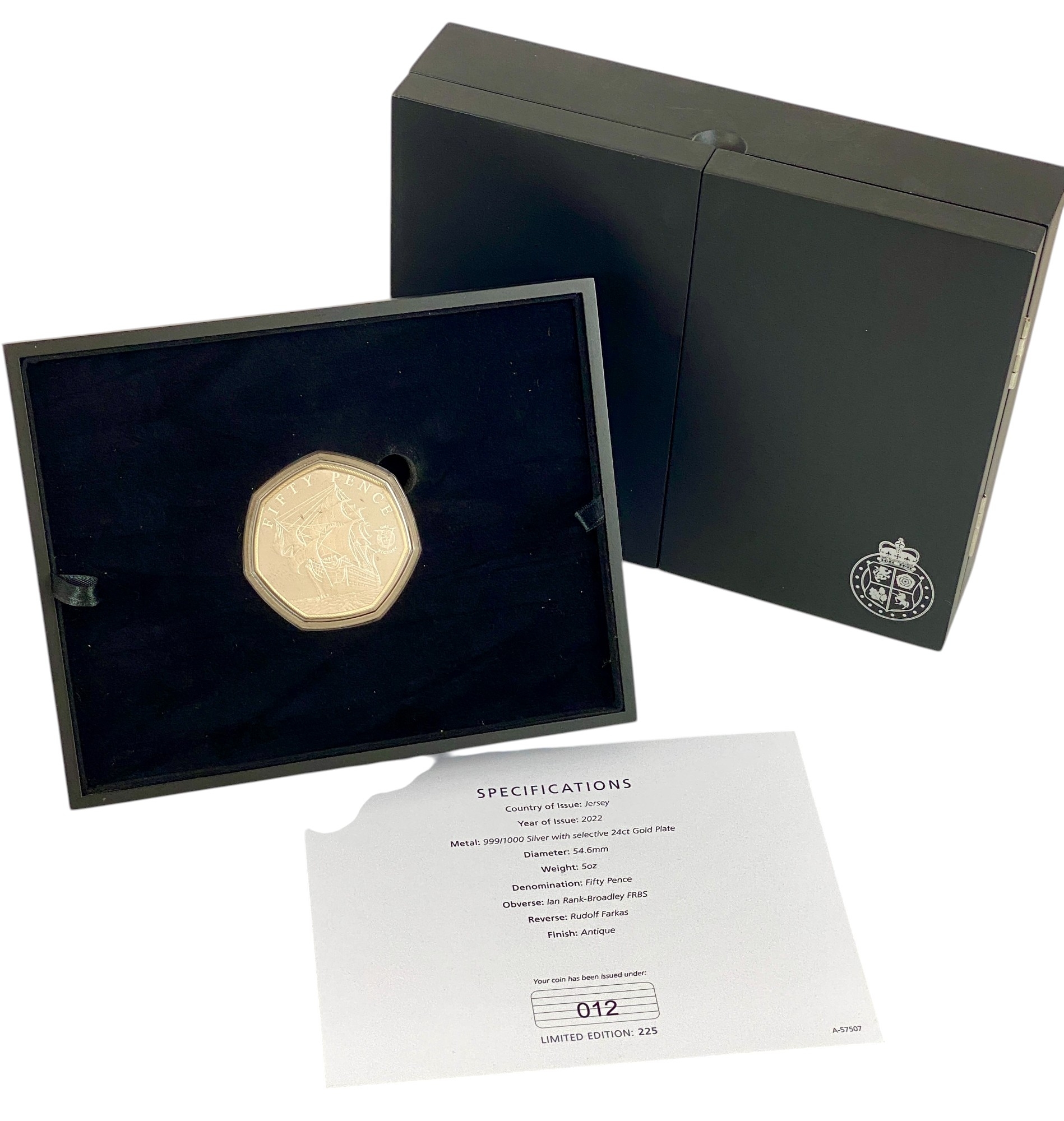 Authenticity. Jersey, 2022, 999/1000 Silver with Selective 24ct Gold Plate. Diameter 54.6mm