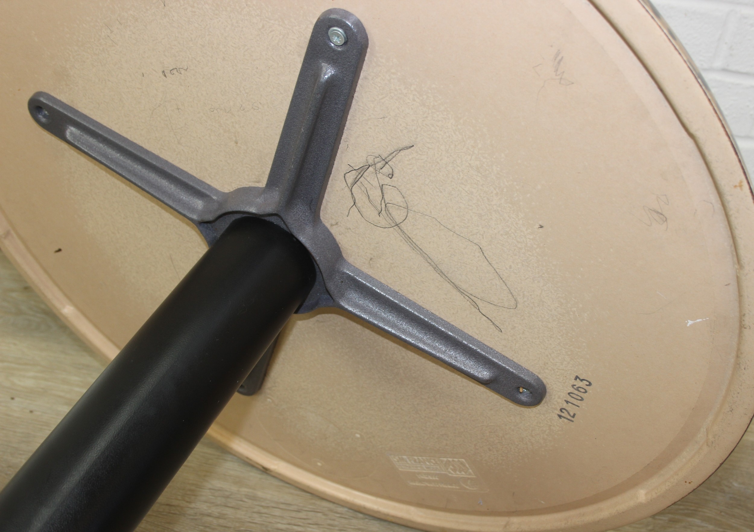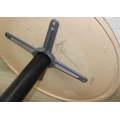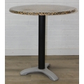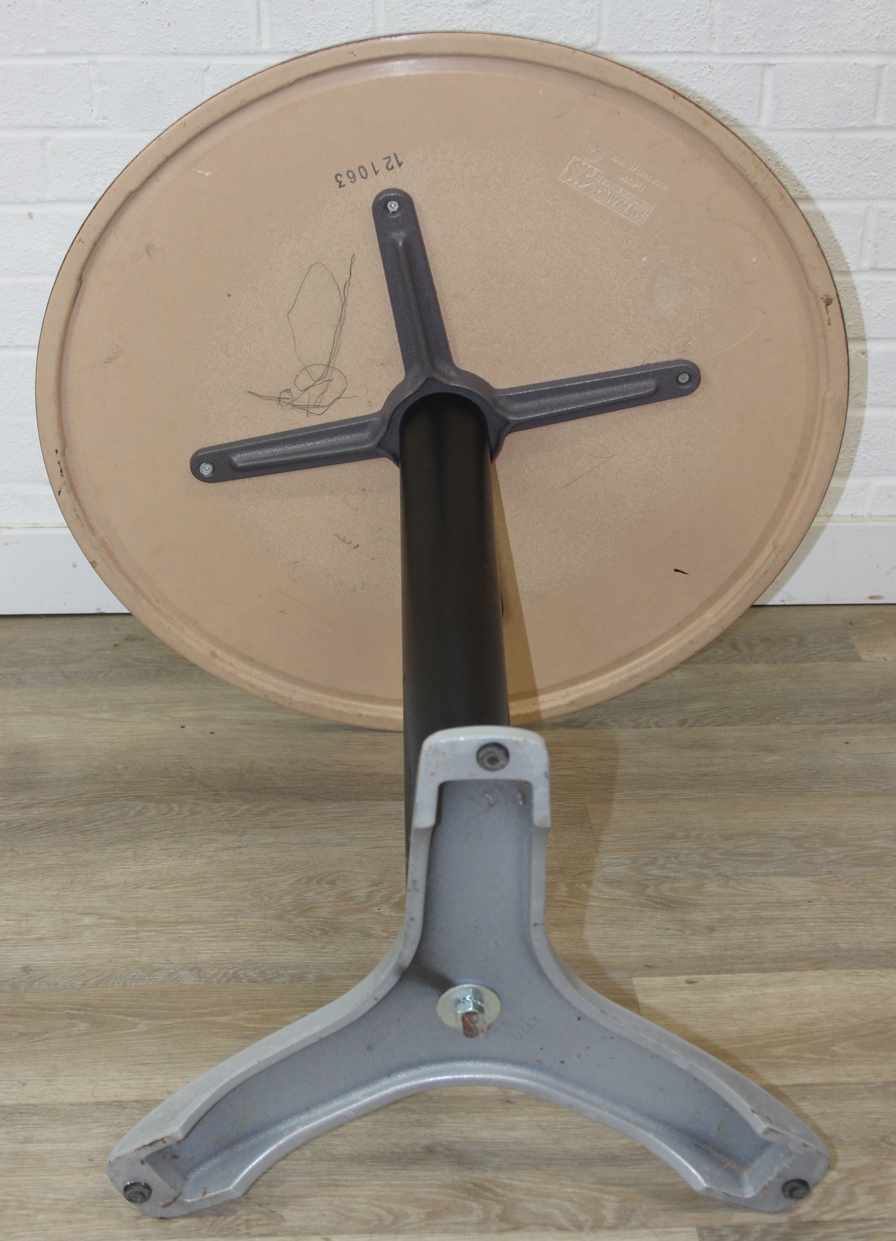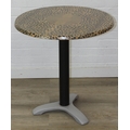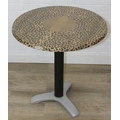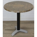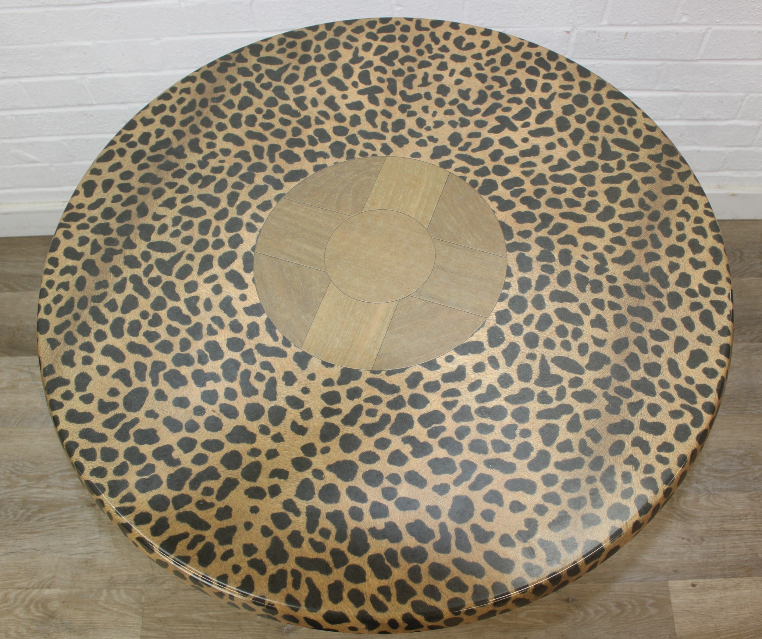 An unusual bistro table with metal base, the table top with cheetah print design, the top by SM France, 70cm in diameter x 75cm tall