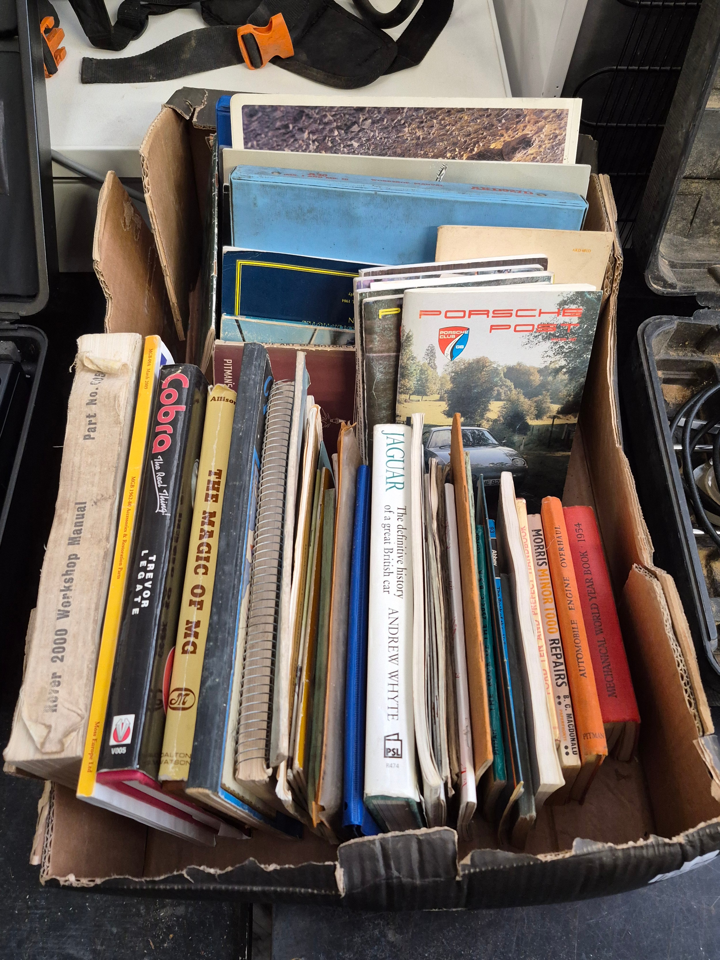 Box containing a quantity of automotive books