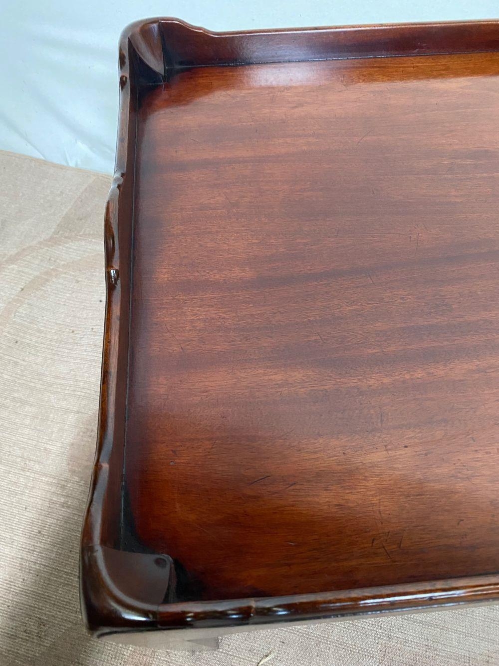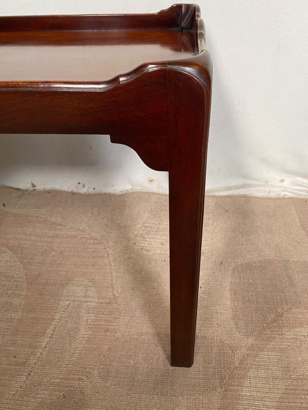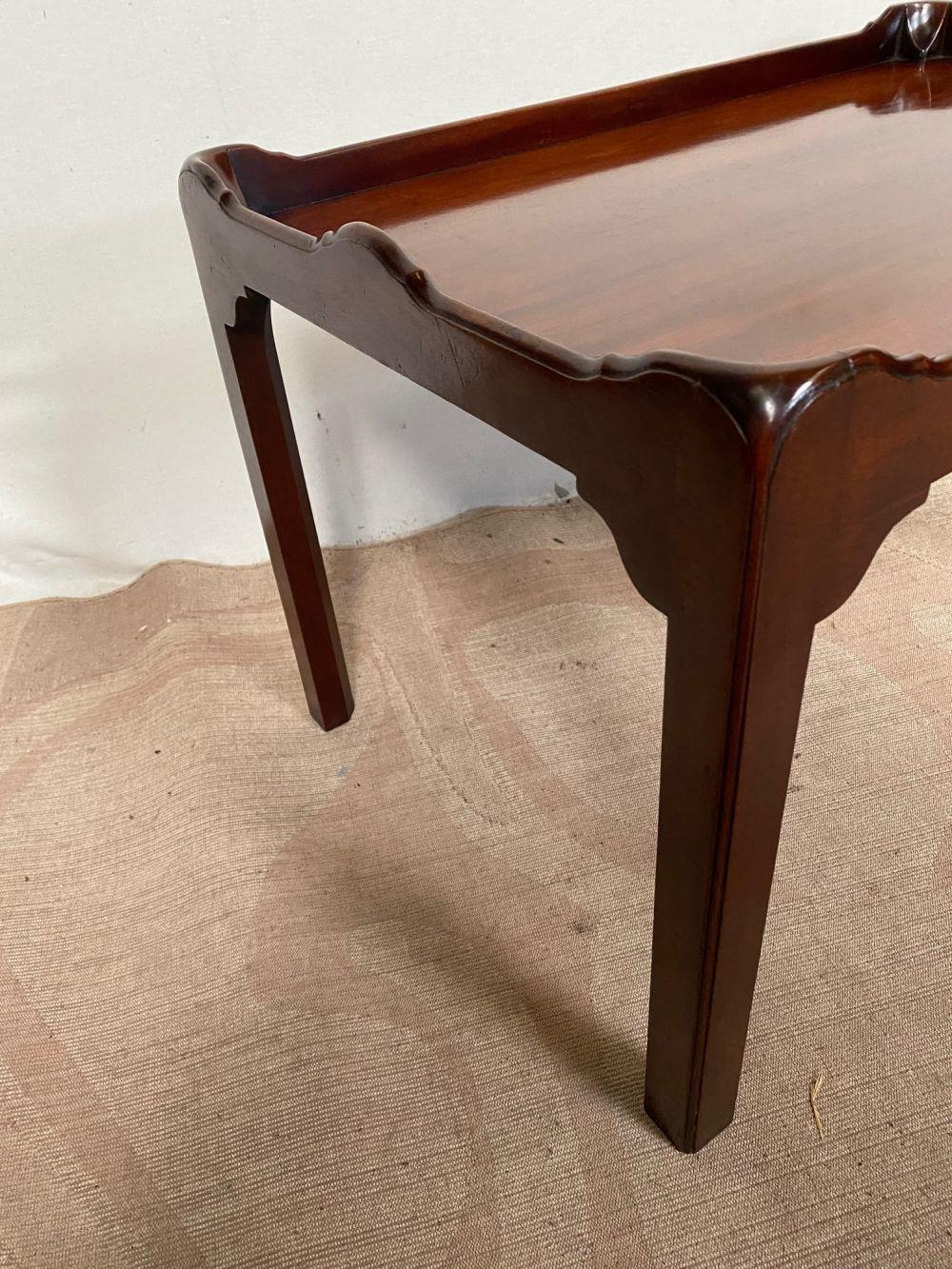 A GEORGIAN STYLE TRAY TOP COFFEE TABLE, with shaped top on square leg. Dimensions: 76cm x 51cm x 48cm high approx