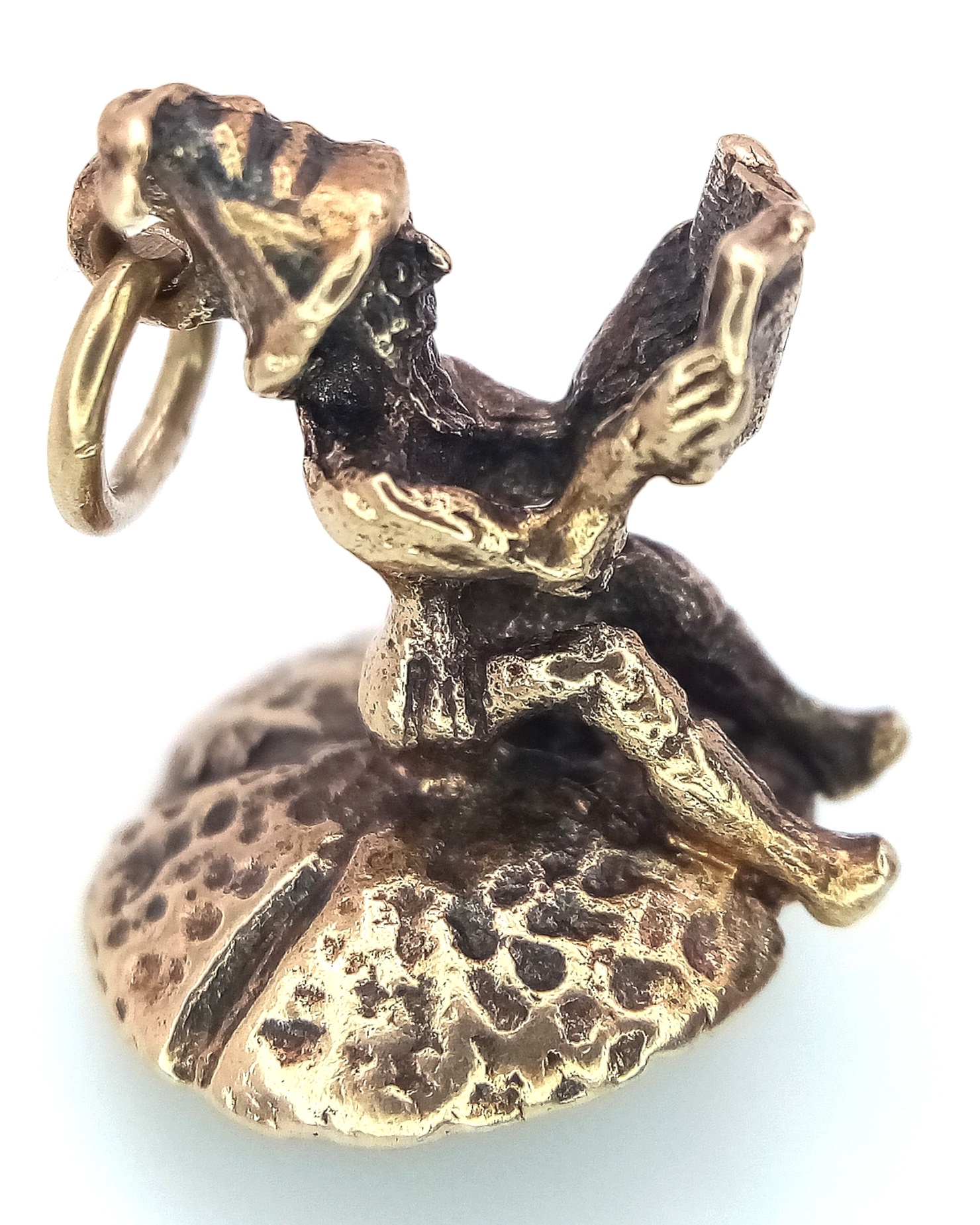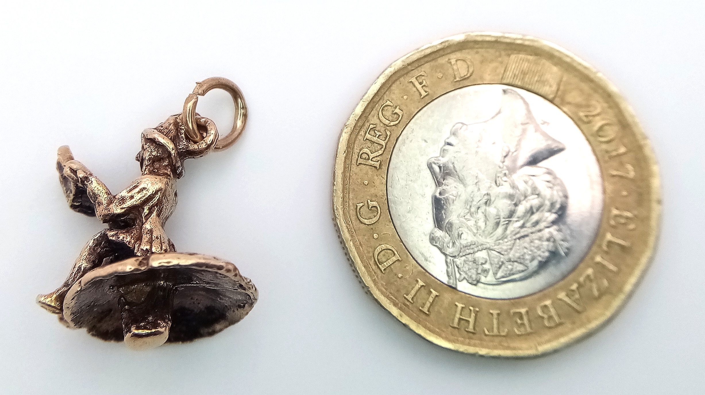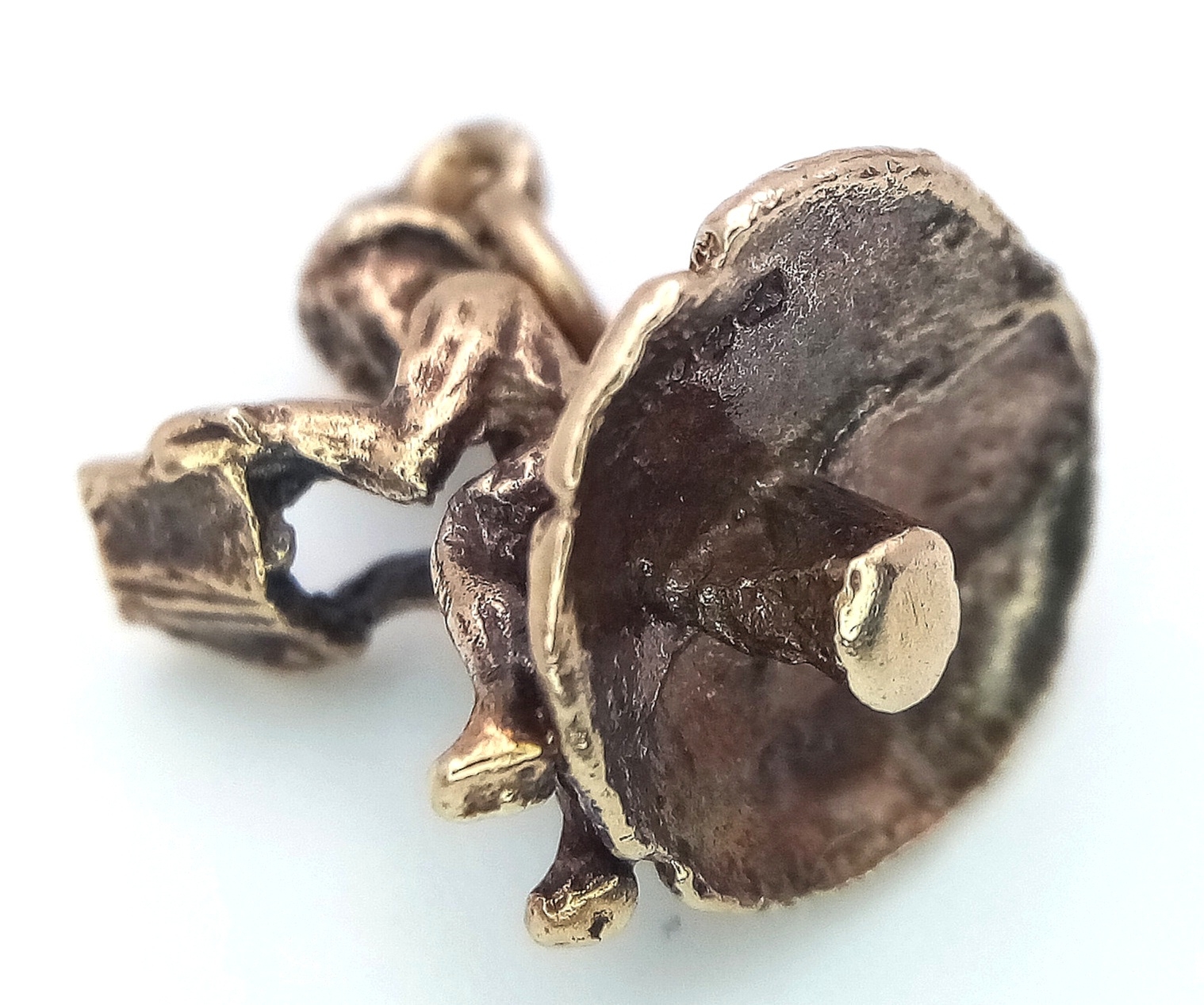 A 9k yellow gold gnome on mushroom charm. 2.7g total weight. SH1921I.