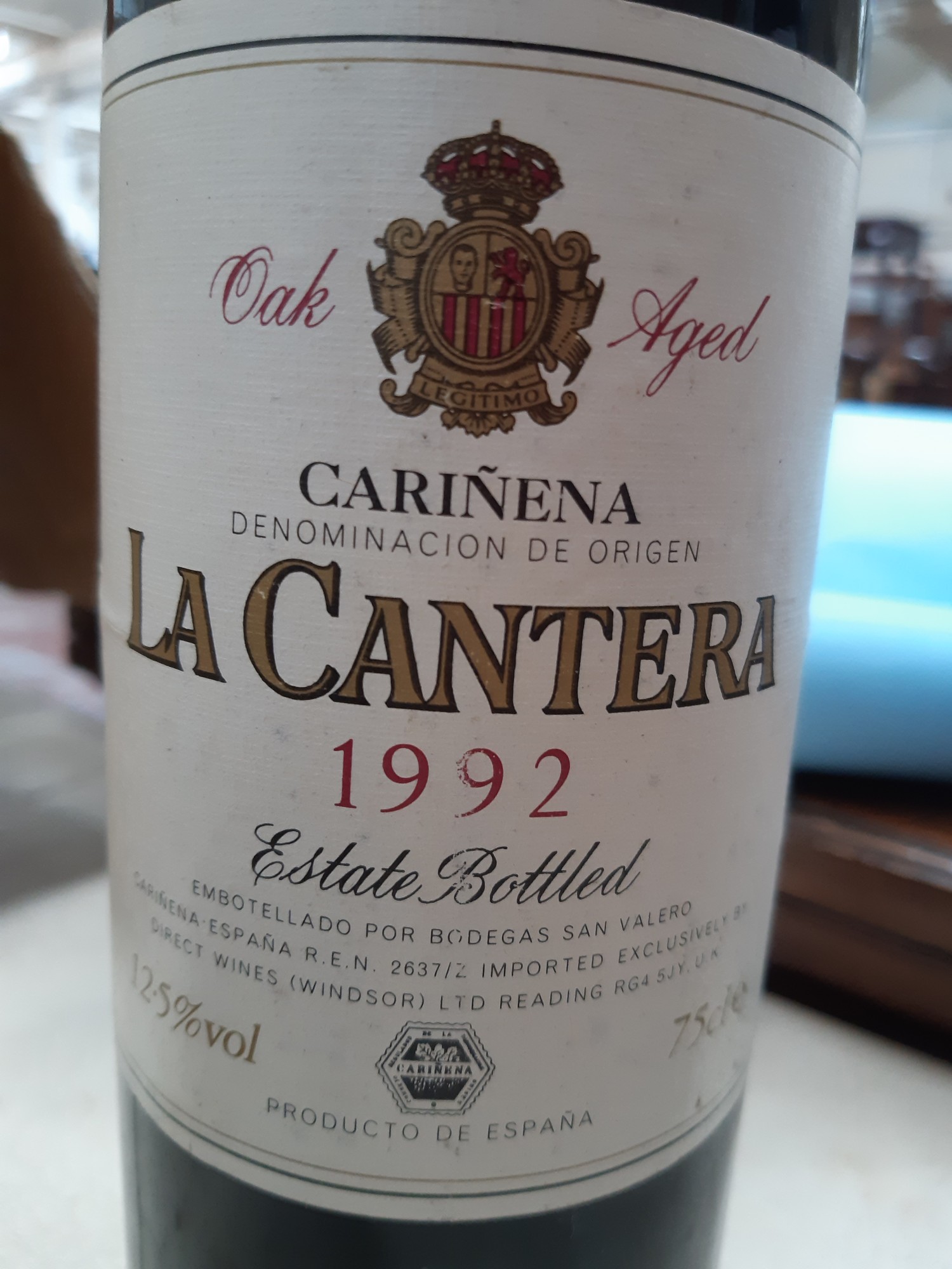A bottle of Bodegas San Valero 'La Cantera' Cariñena Crianza 1992, fill level - in neck