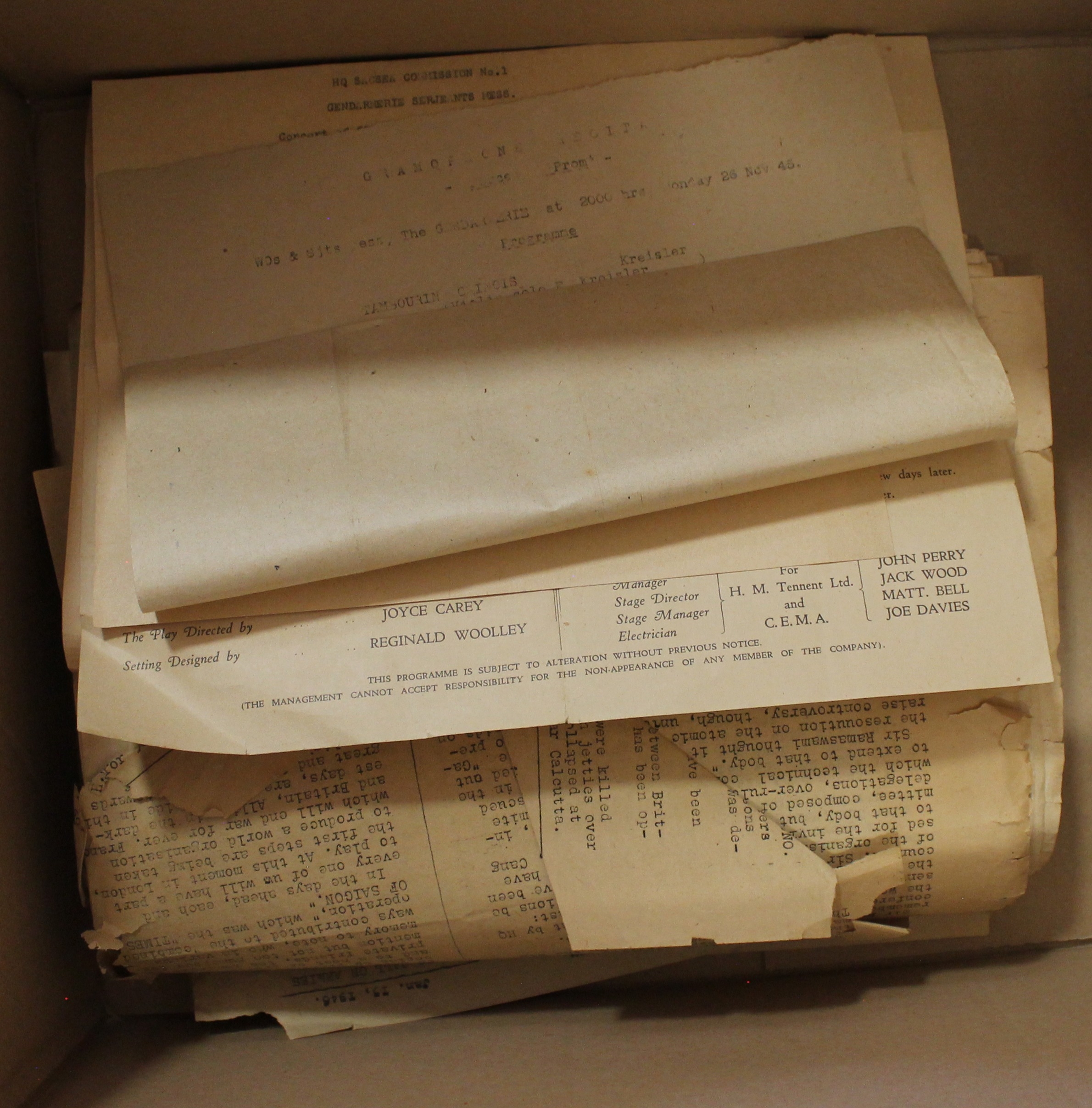 Collection of partial newspapers from the Times of Saigon dating 16th September 1945 onwards, serving the Victorious Allied Forces in French-Indo China, articles detailing the Kings Christmas broadcast, death of MP's and soldiers, Nuremburg trials, sentencing of SS guards to prison and death sentences, Bormann (Hitler's deputy) death etc. viewing recommended. (½B)