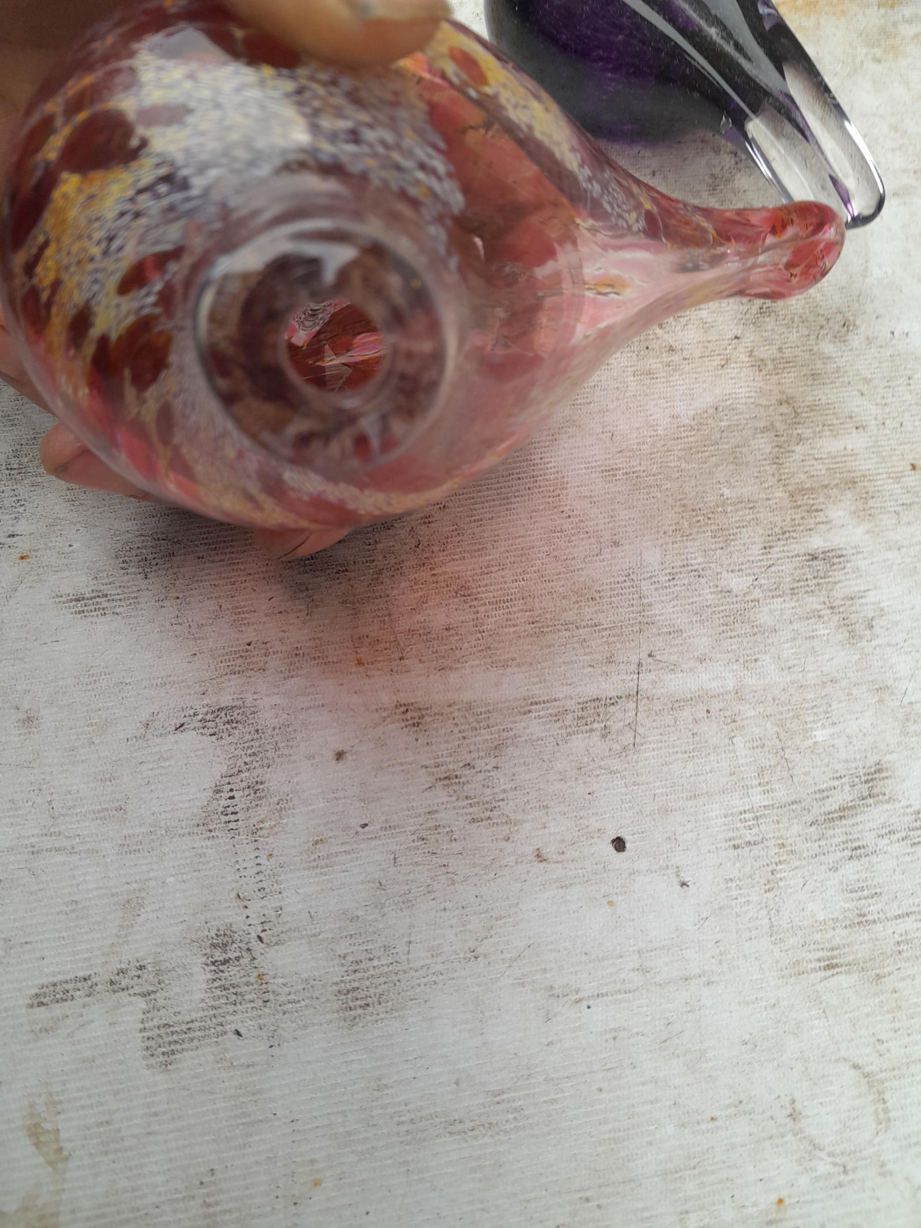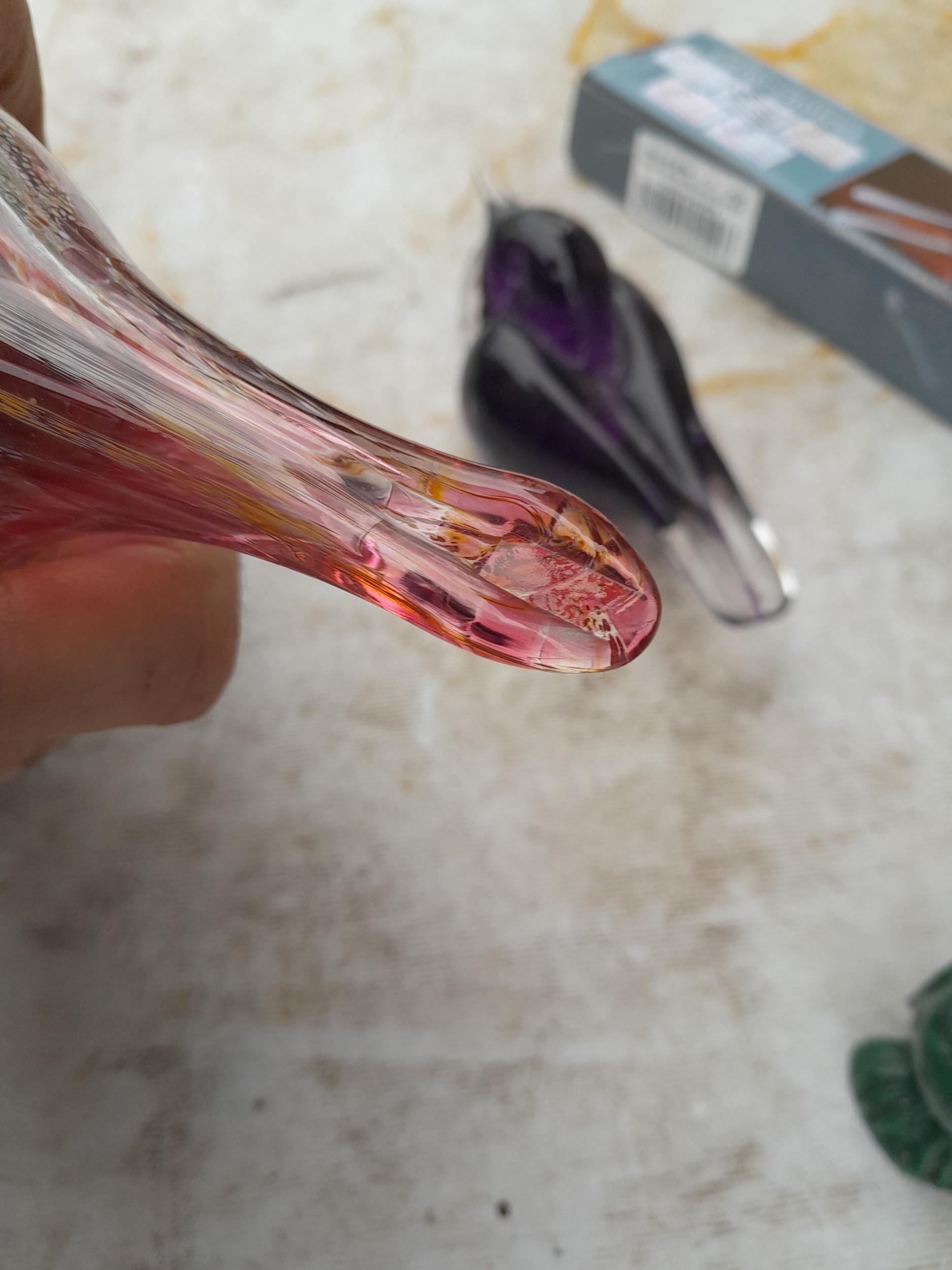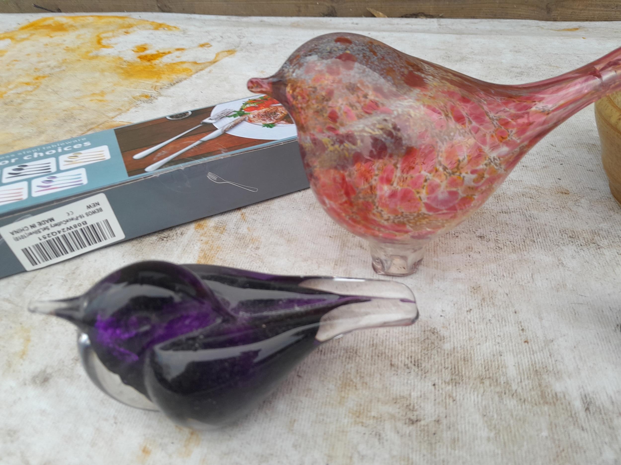 Box of oddments : vintage glassware , Mdina style bird etc.