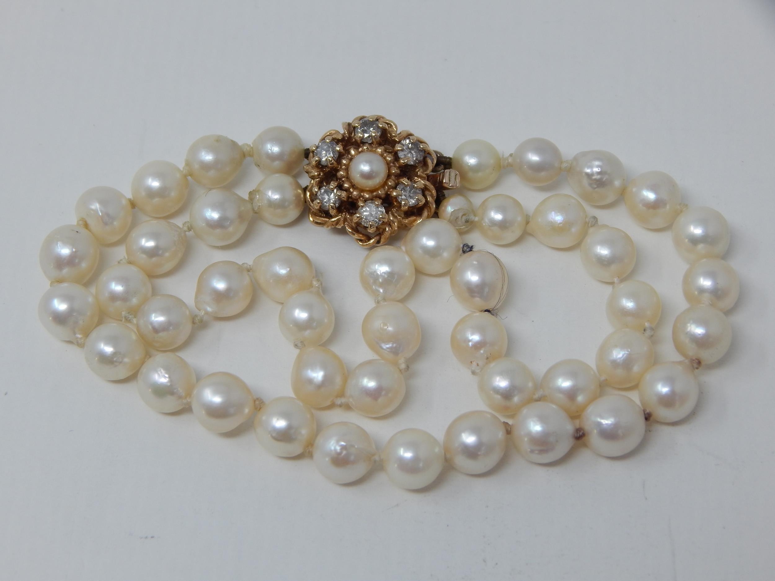 9ct Gold & Diamond Set Pearl Bracelet: The Diamonds Estimate...