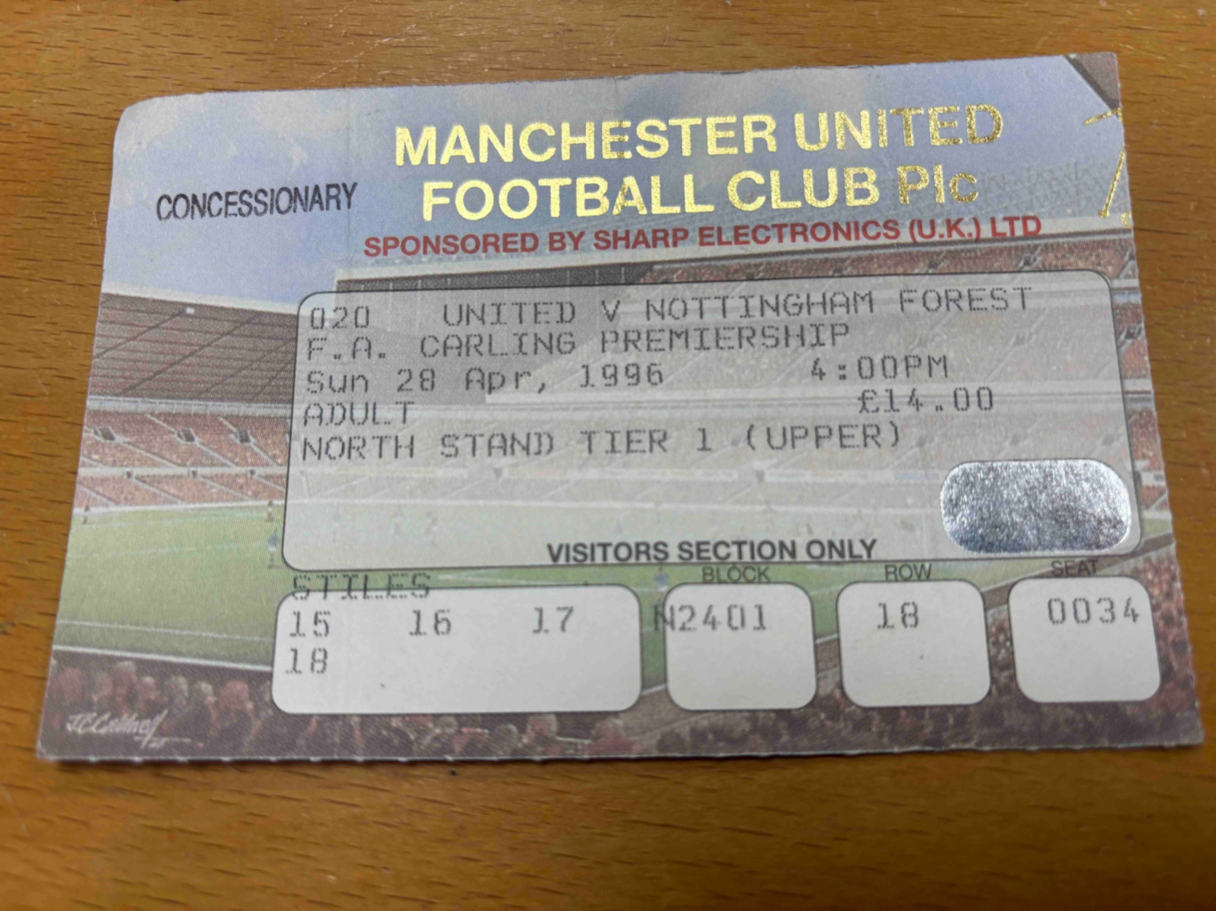 Manchester United Home ticket v Nottingham Forest 95/96