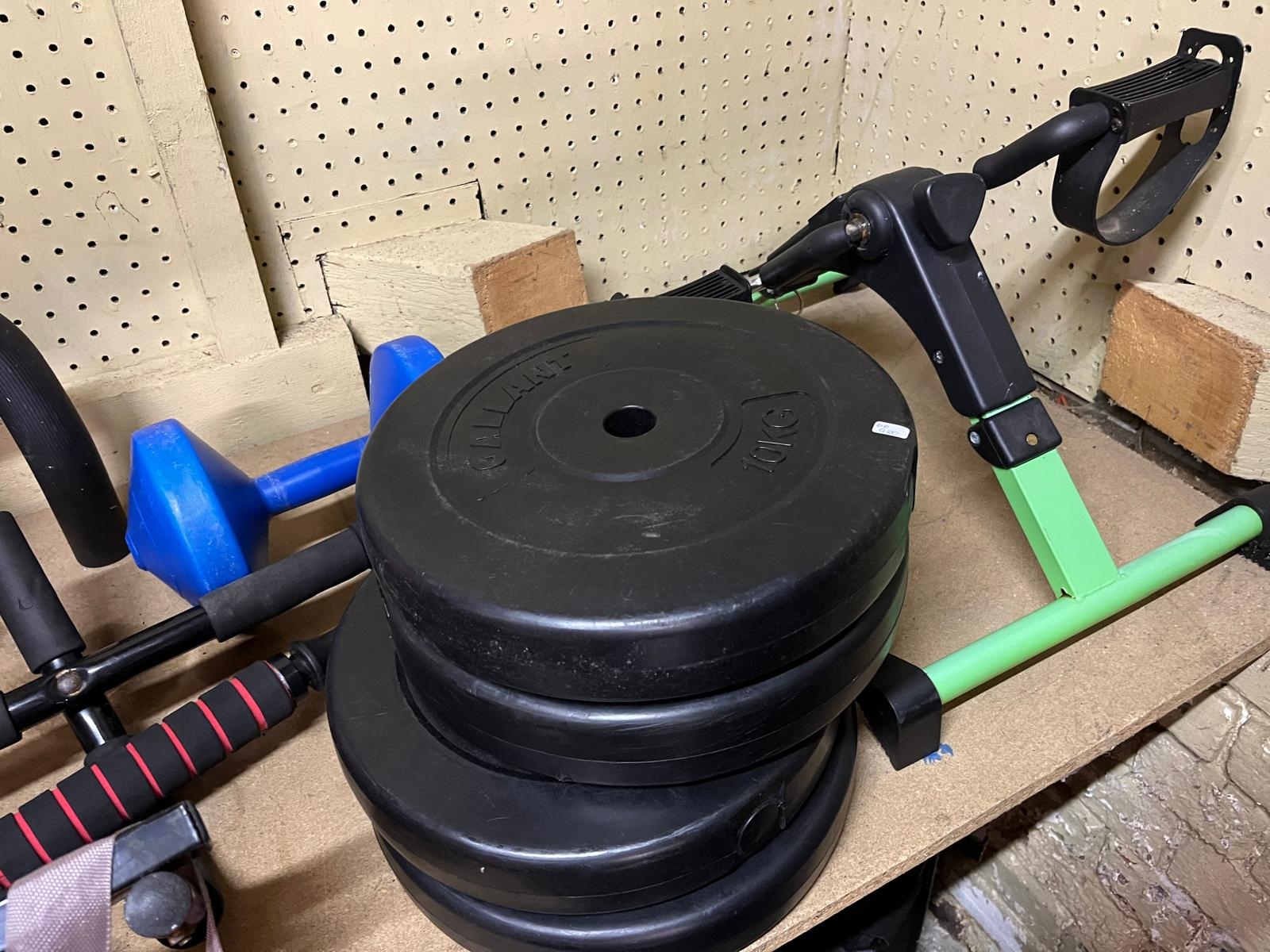 QTY KEEP FIT EQUIPMENT WEIGHTS DUMBELLS ROWING MACHINE