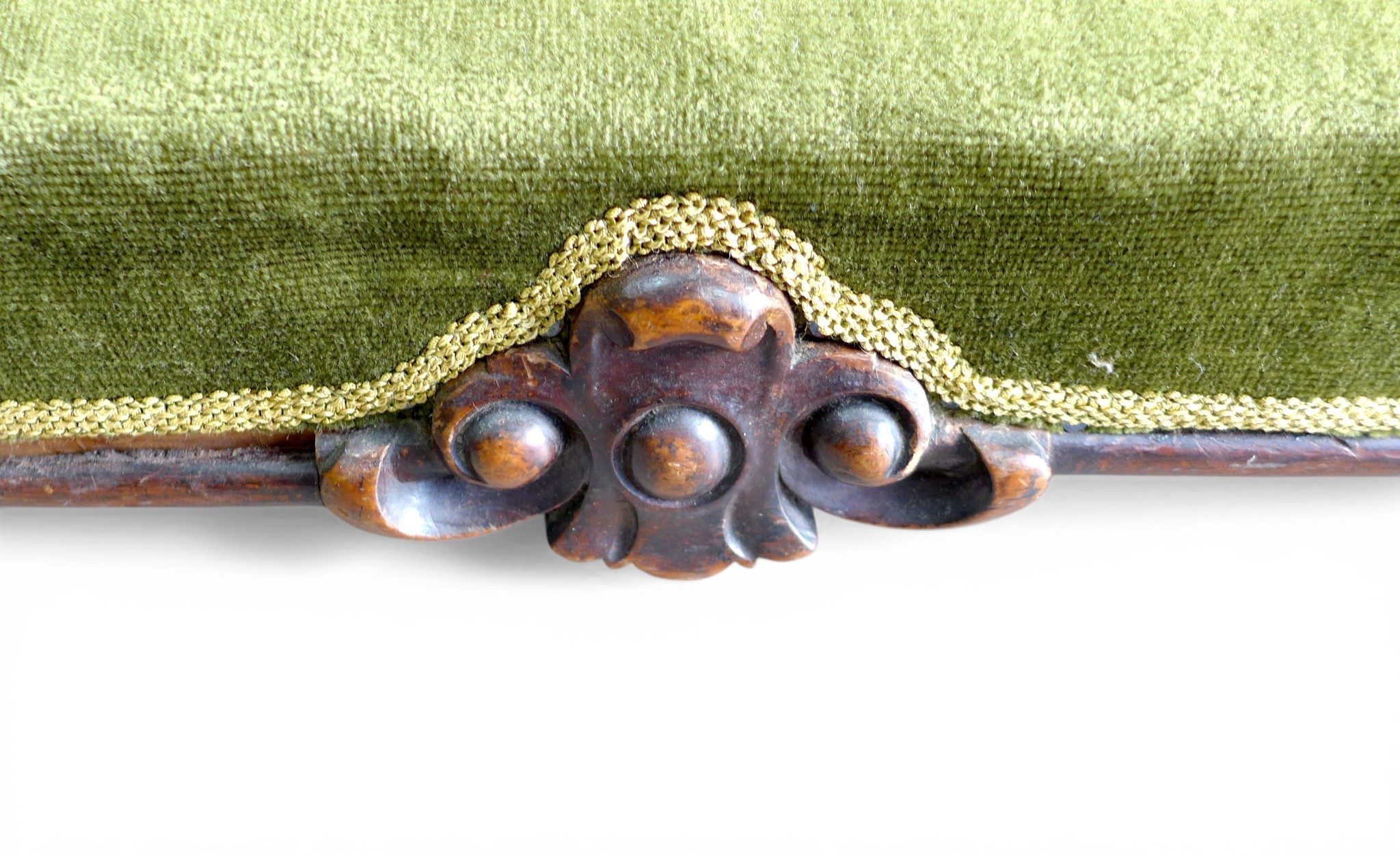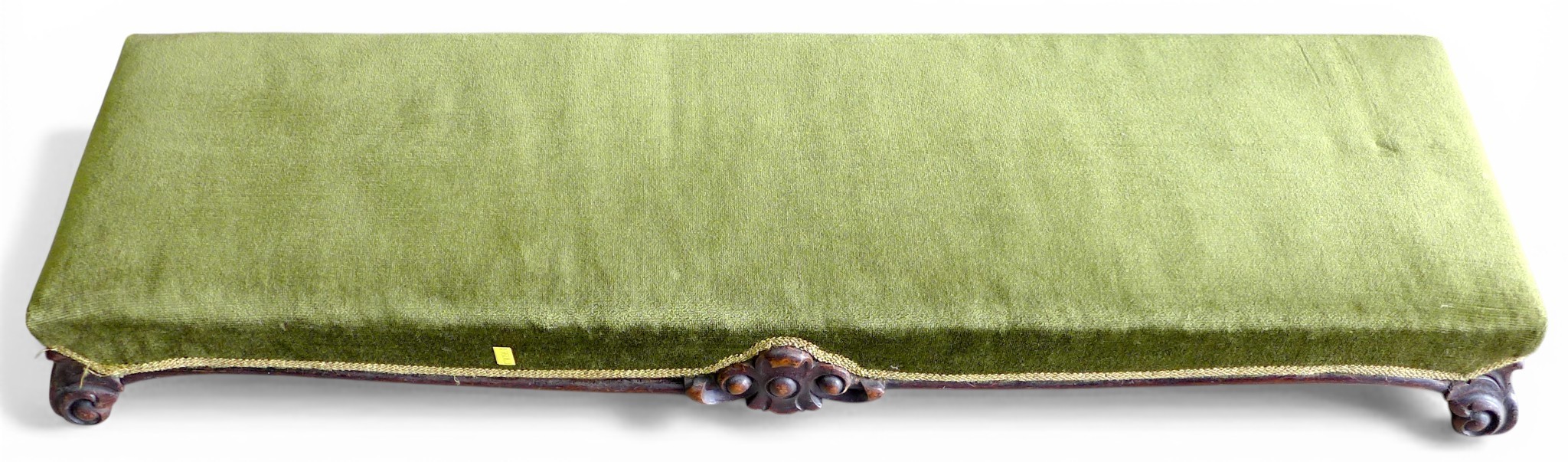 A Victorian mahogany framed footstool, green velvet upholstery, 101 by 25 by 12cm high.