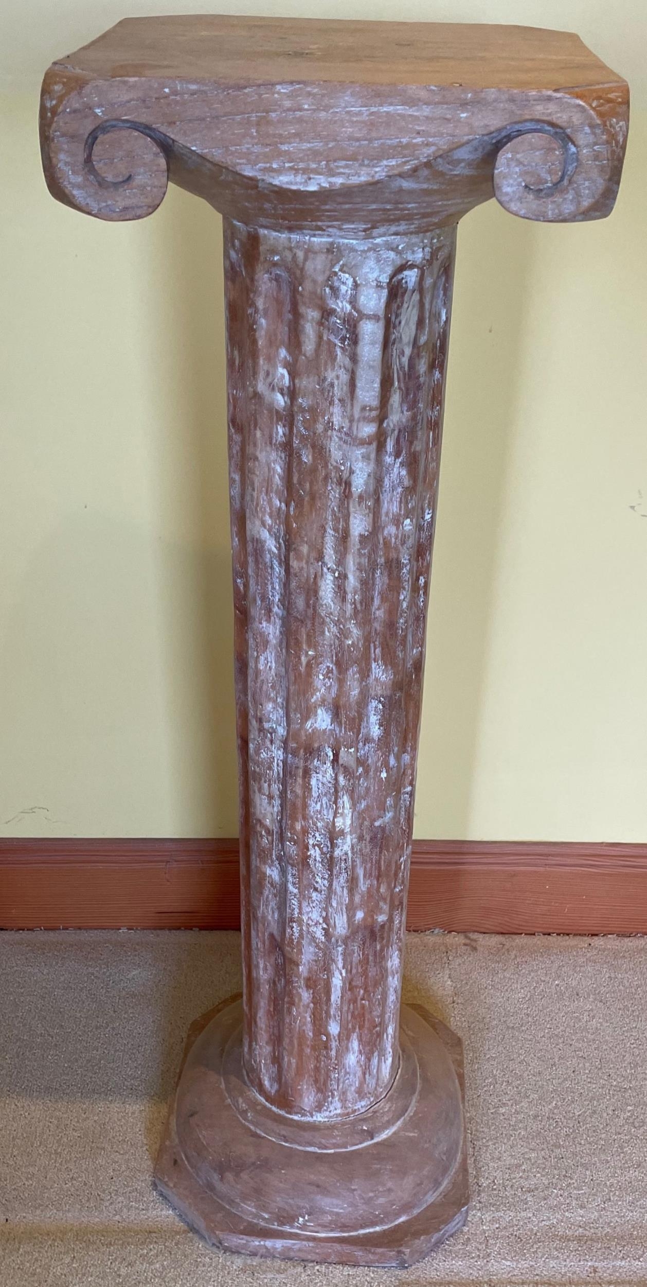 A nice decorative solid wooden distressed ROMANESQUE STYLE COLUMN DISPLAY dimensions 30cm square diameter x 1m high
