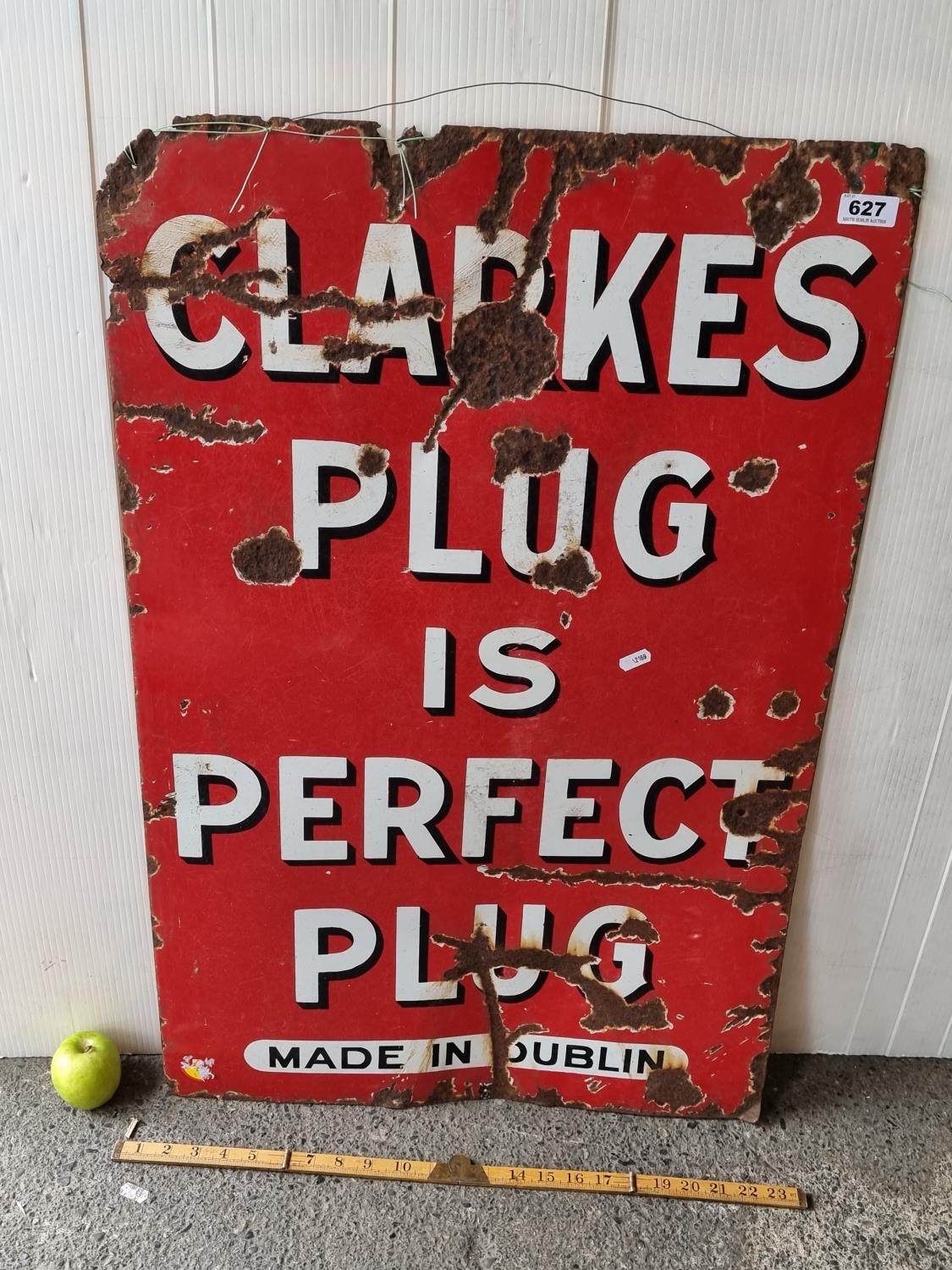 A 100% Original Cast "Clarkes Plug is Perfect Plug" Enamelled Advertising Sign Made In Dublin. Heavy
