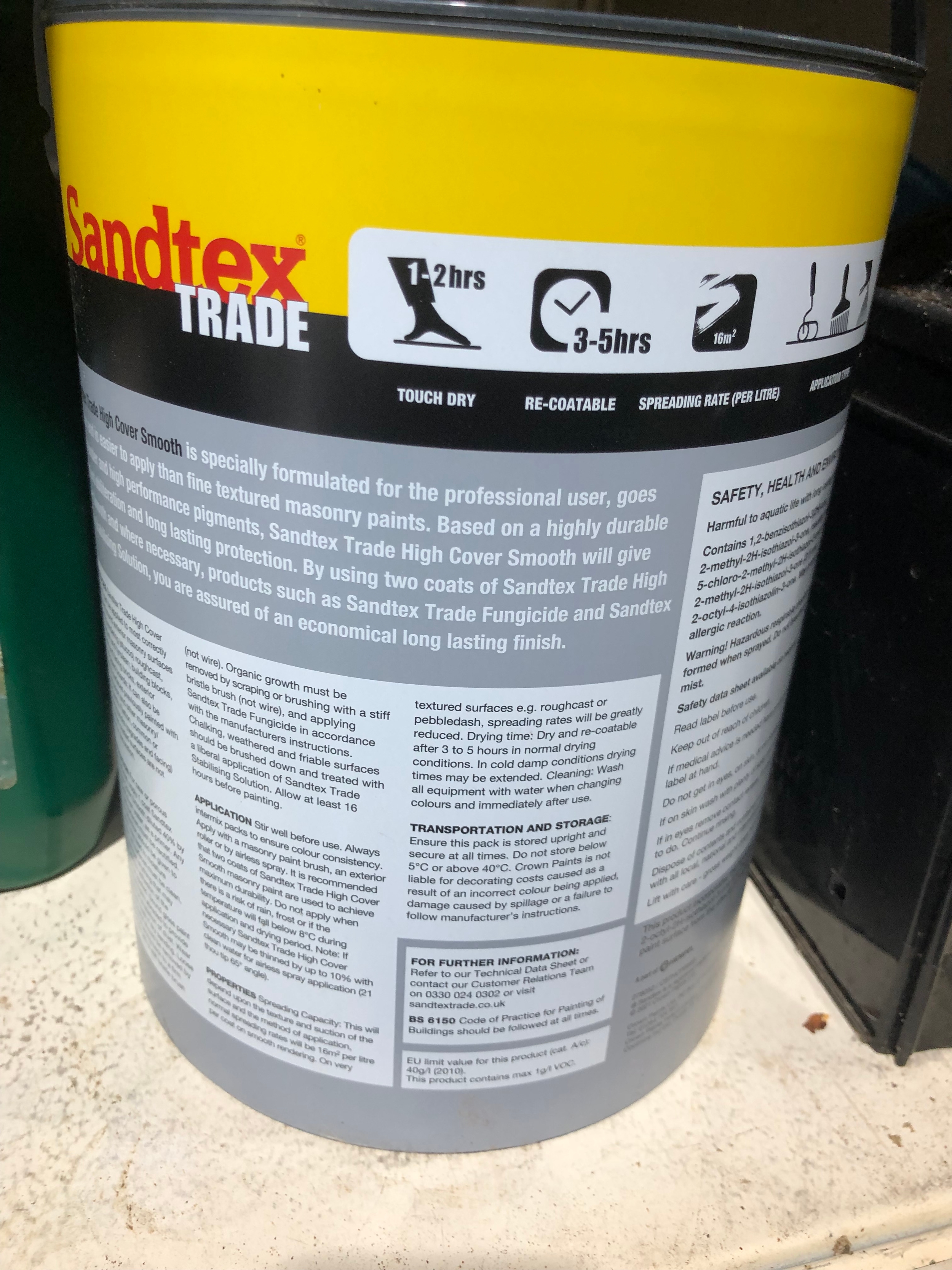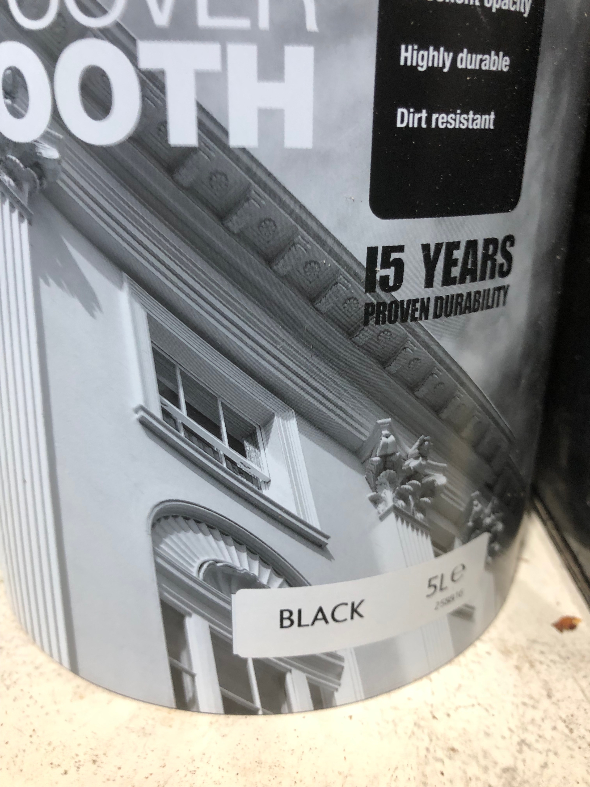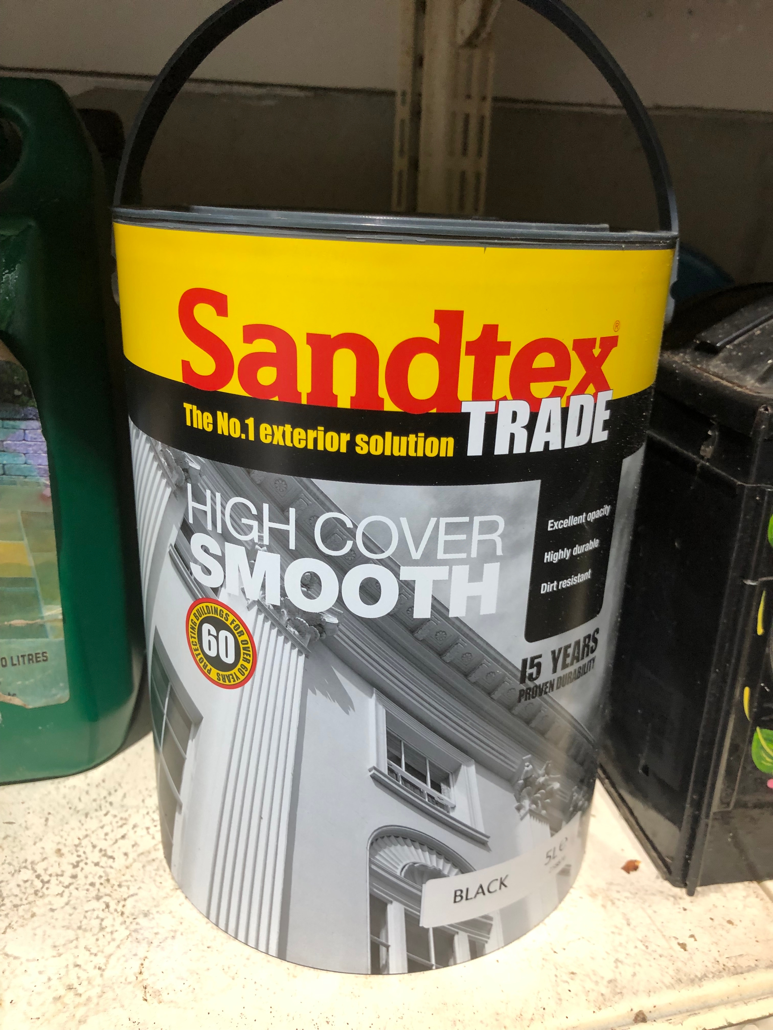 5 litres of Sandtex black high cover smooth paint