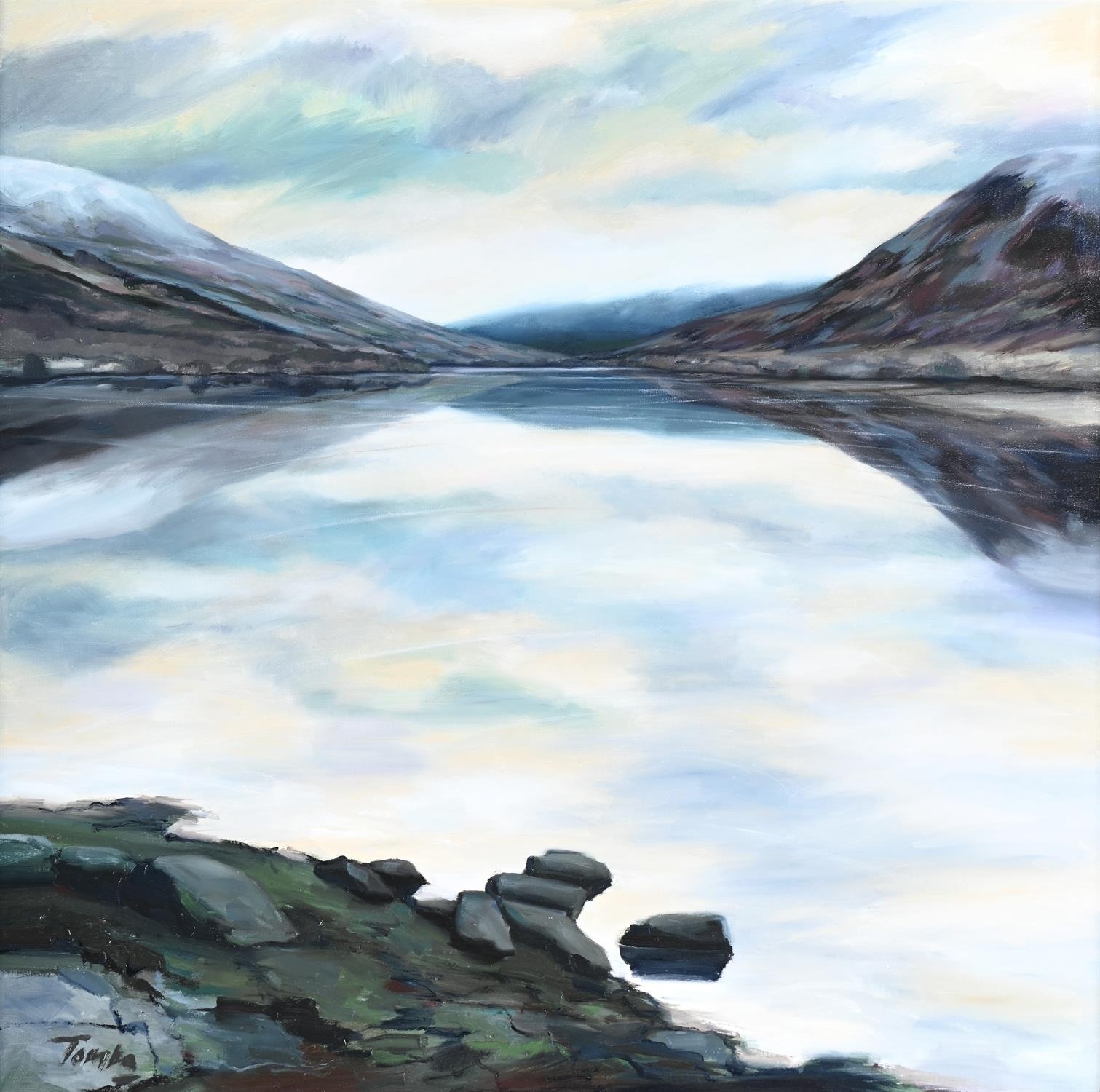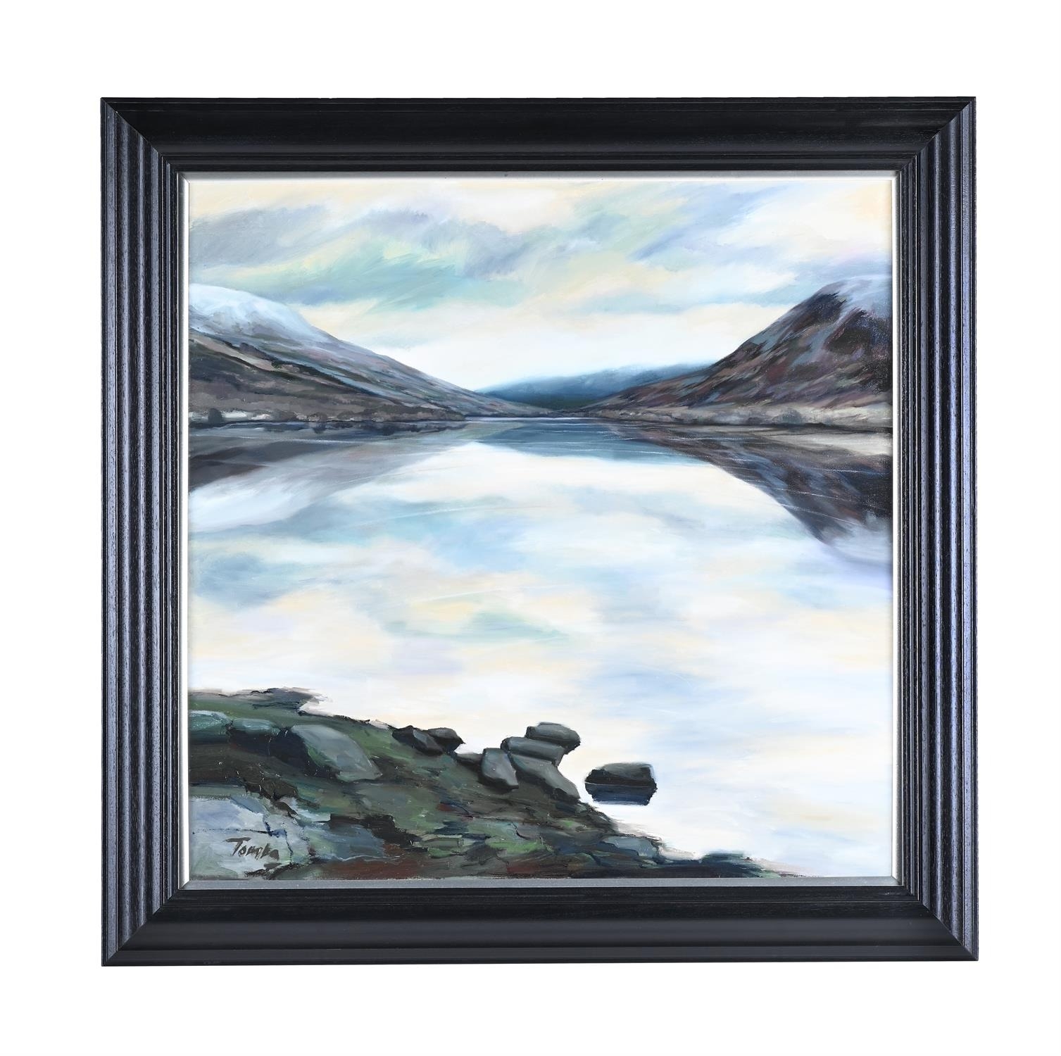 TOMBA (20TH/21ST CENTURY)VIEW ACROSS THE LOCH Oil on canvas Signed Tomba (lower left)80 x 80cm (31¼ x 31¼ in.) Measurements do not include the frame unless specified. Please note Dreweatts are not liable for damage to frames or mounts.