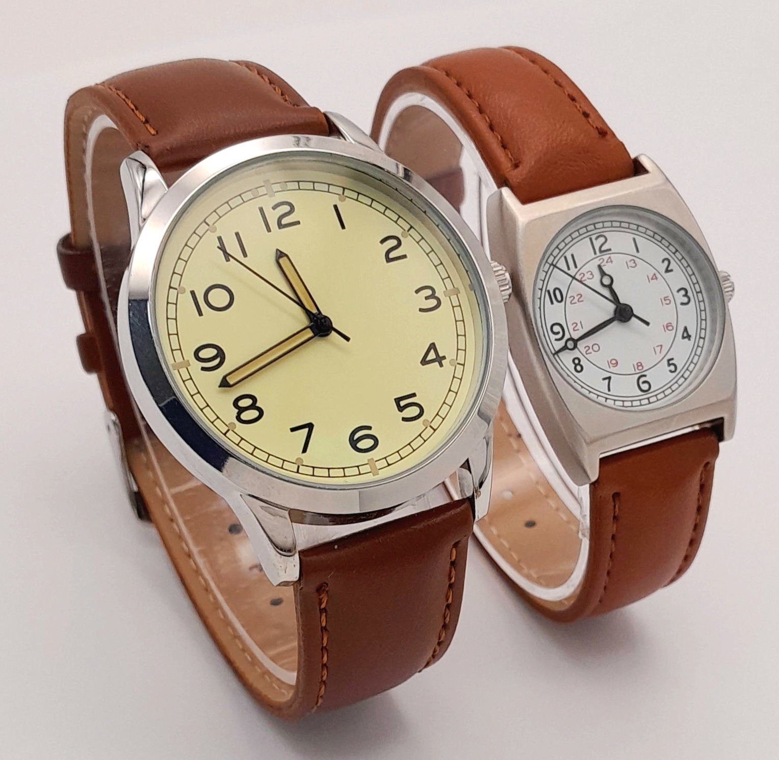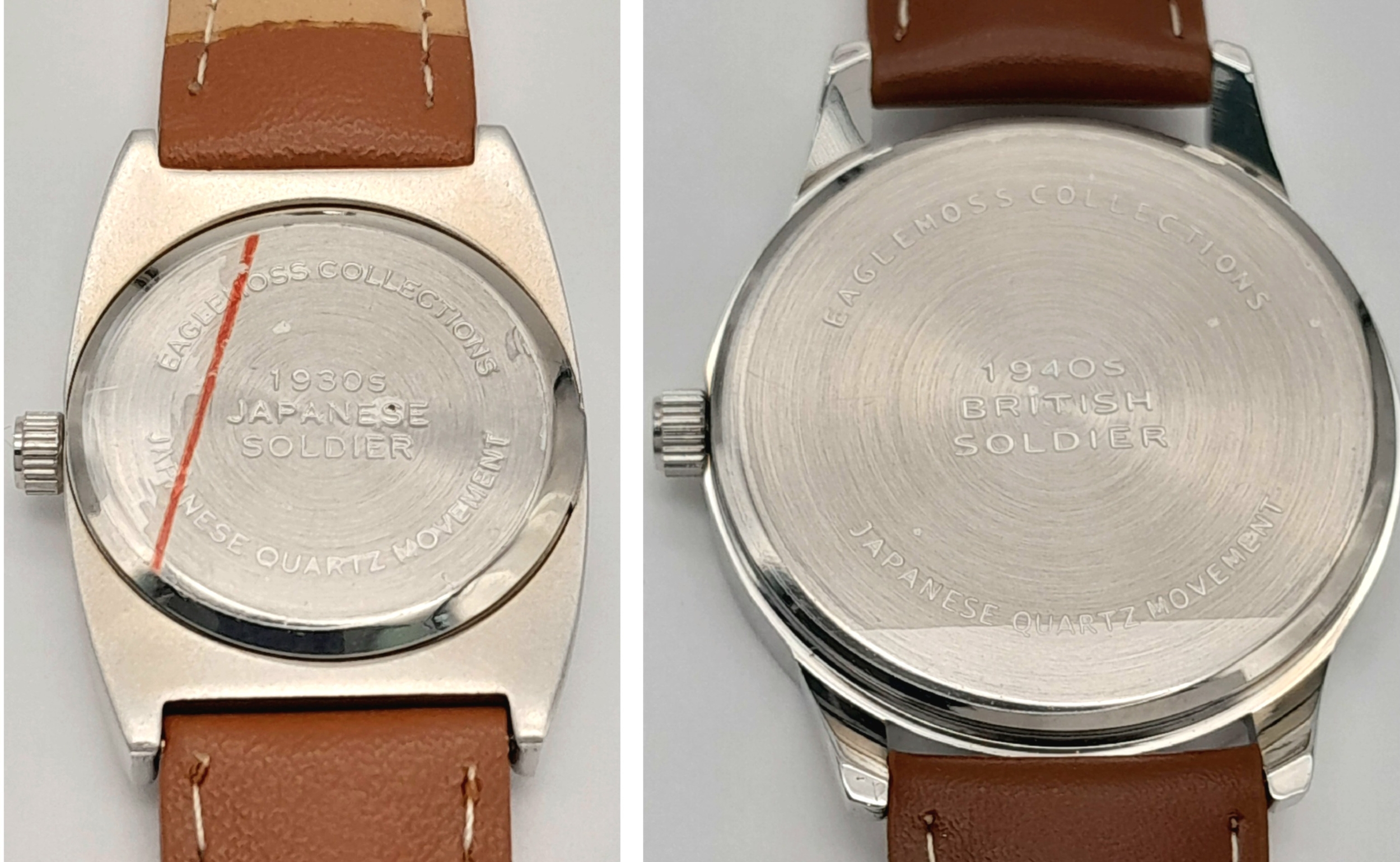 Two Military Design Quartz Watches Comprising: 1) A Japanese Soldiers Watch-25mm Case & 2) British Soldier-40mm Case. Both have had new batteries fitted November 2025. Both come Boxed.