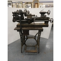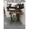 Treadle-operated lathe by Rotherhams of Coventry, mounted on a Singer sewing machine base.
