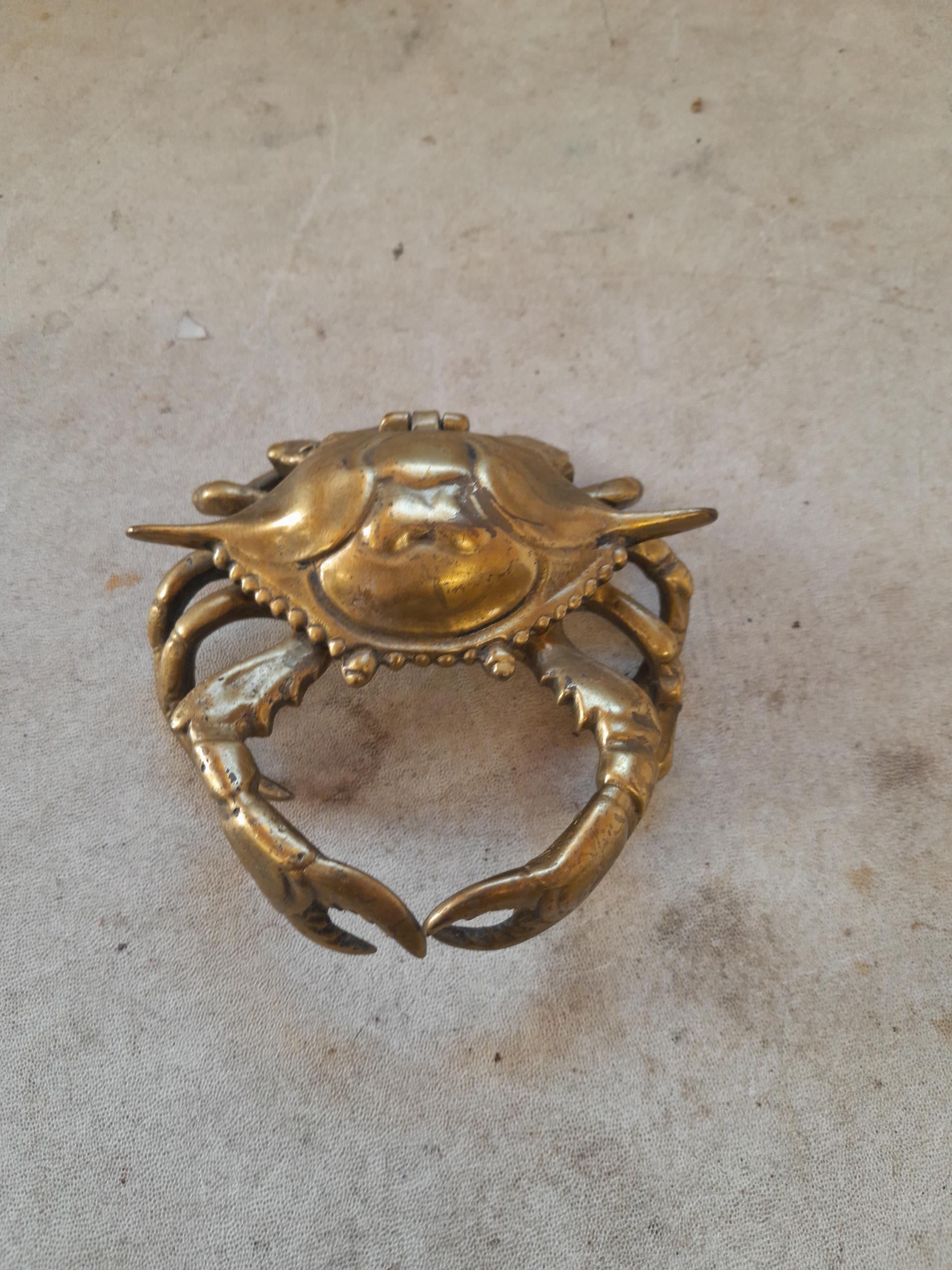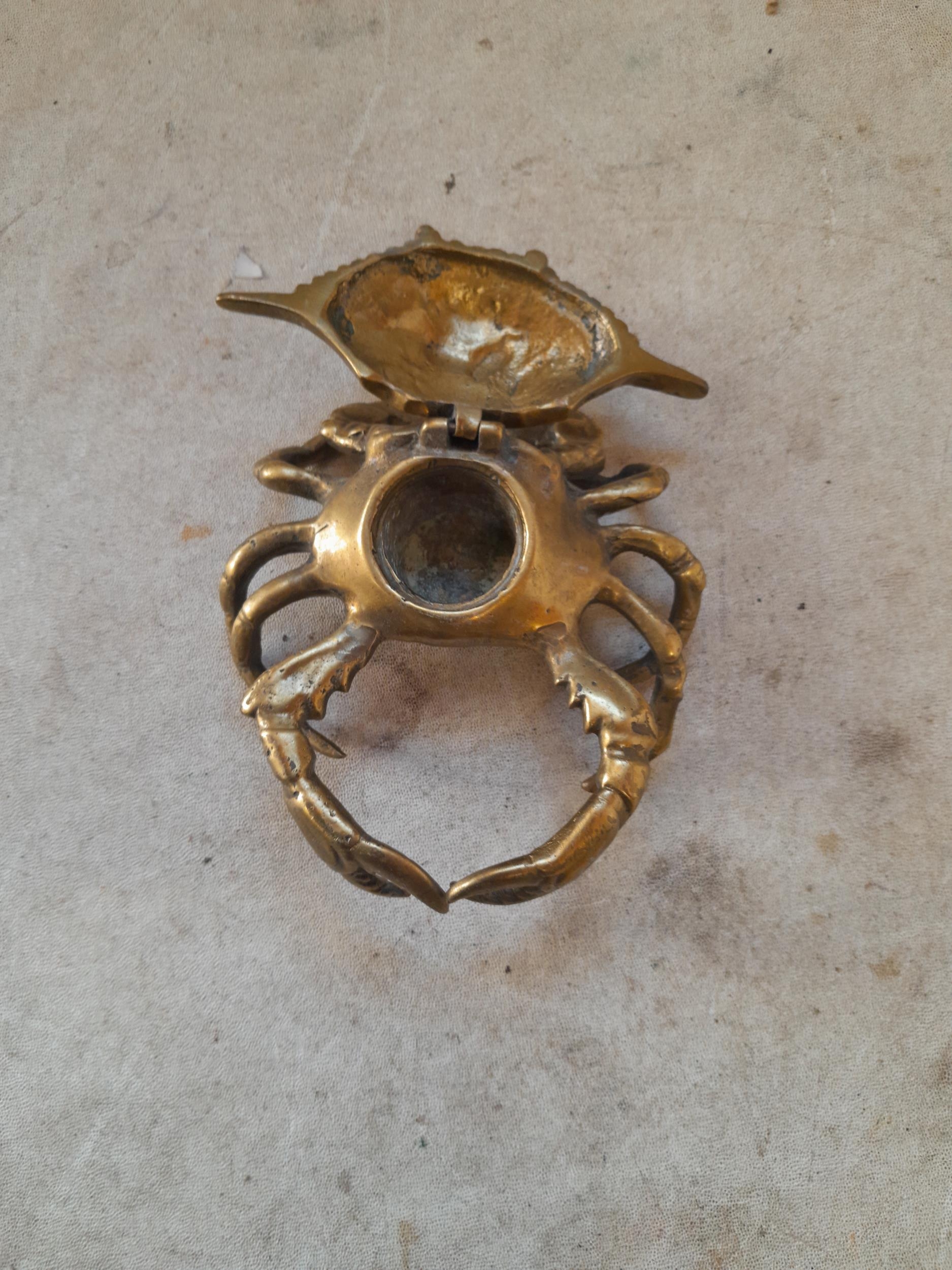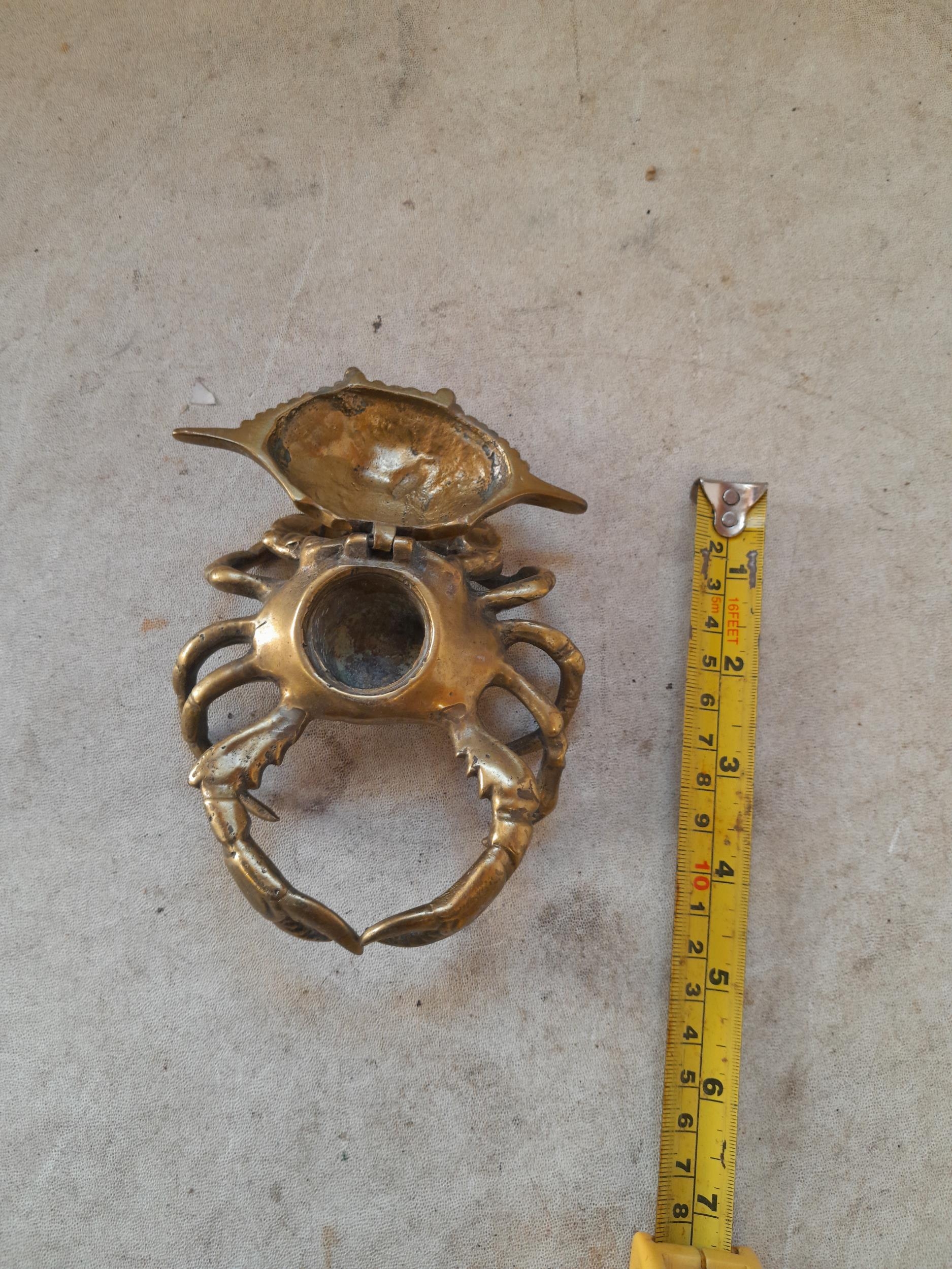 Rare early 20th century French brass inkwell modelled as a crab with hinged lid