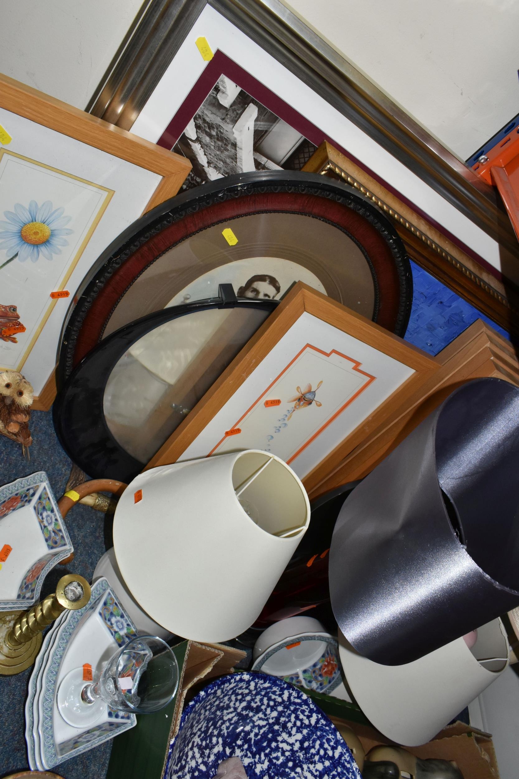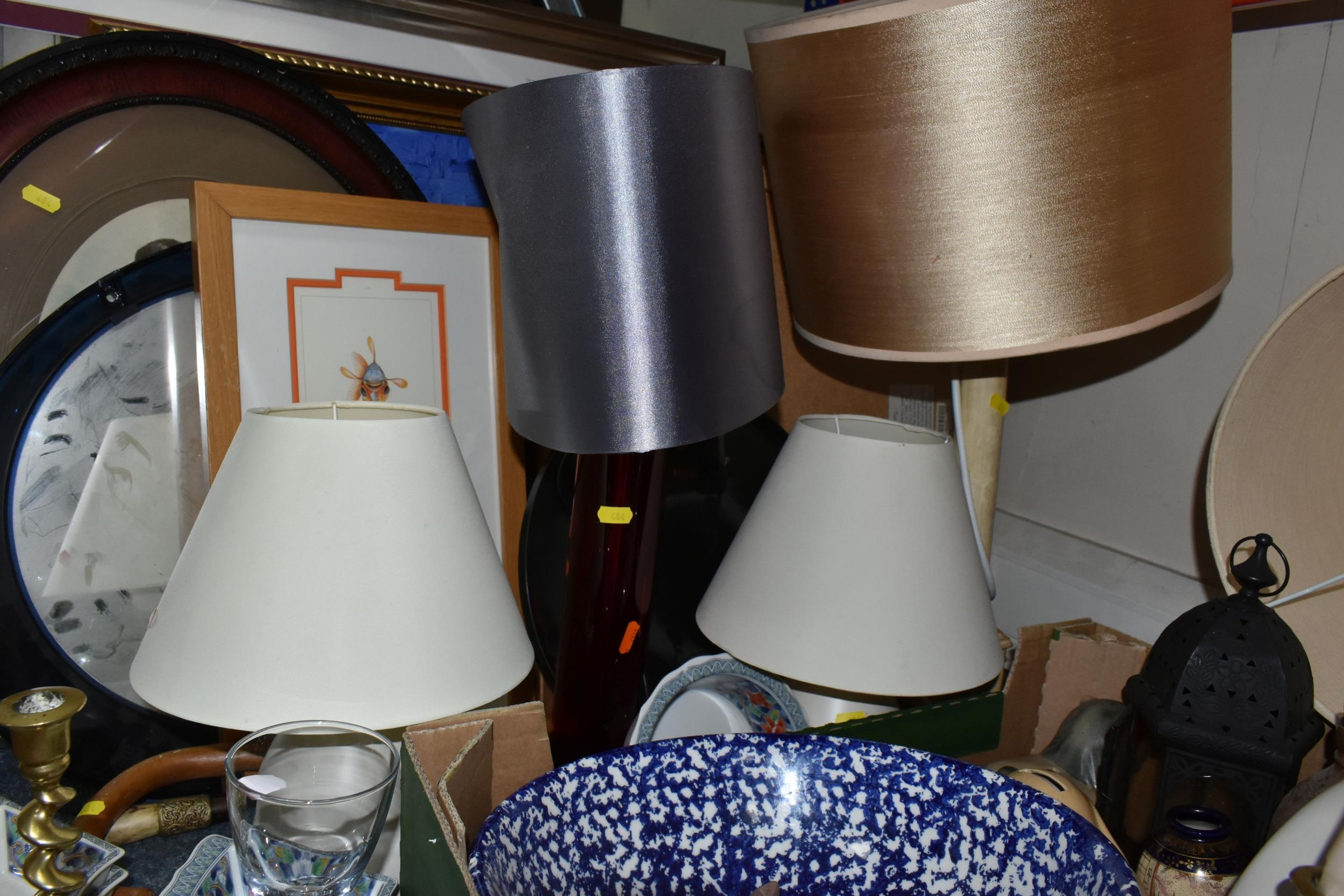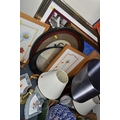 A BOX AND LOOSE CERAMICS, PICTURES, LAMPS AND SUNDRY ITEMS, ...
