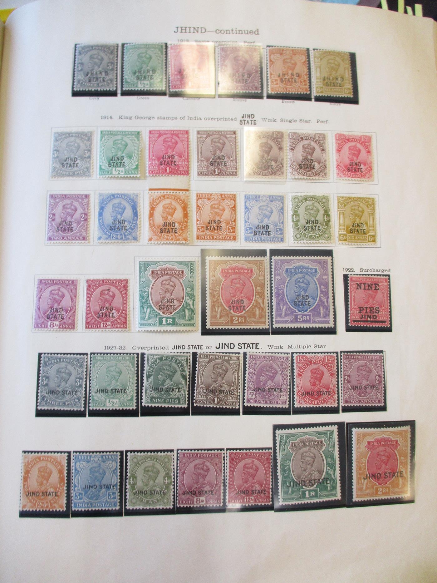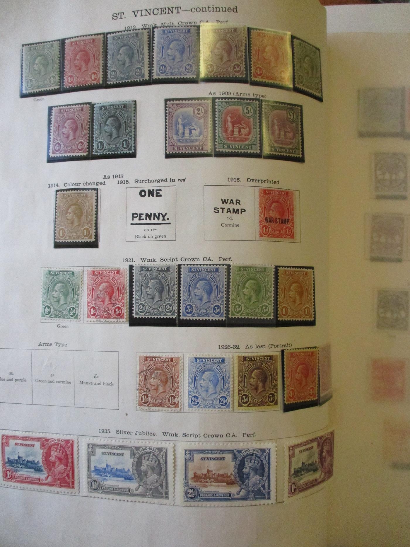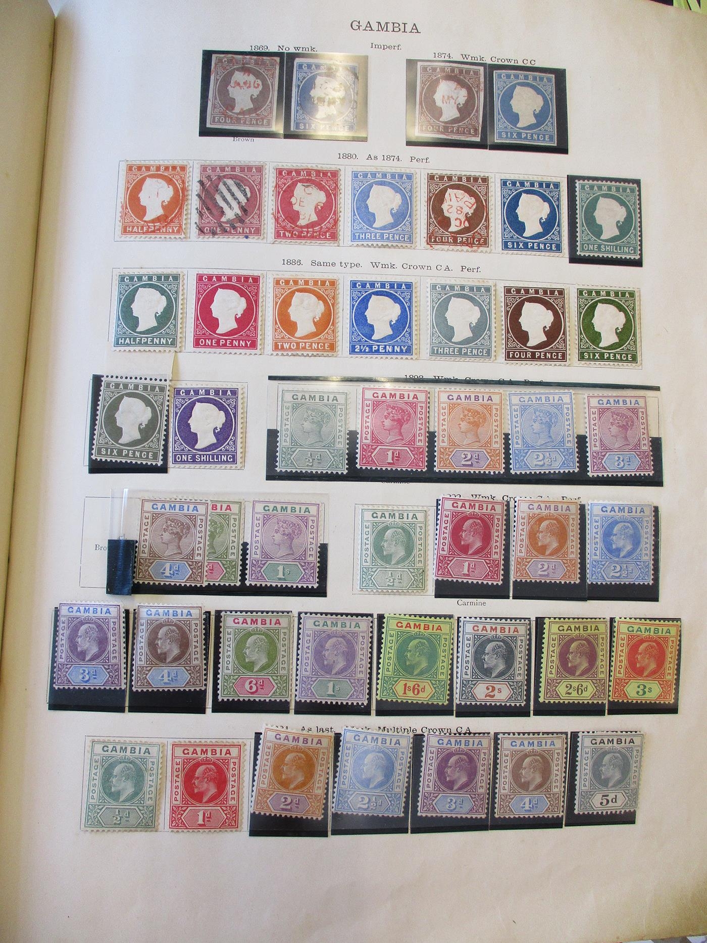Superb almost complete ‘A to Z’ QV to 1935 predominantly M (unless stated) BC coln in ‘The New Ideal Postage Stamp Album’, extraordinary collection formed by collector with high-val sets and early issues throughout incl Aitutaki 1911-16 set to 1s, Antigua 1884-87 1s U, 1903-07 set to 5s, 1908-17 set to 2s, 1921-29 set to £1 & vals to 4s & 1932 Tercentenary set to 5s, Ascension 1922 ovpt set to 3s, 1924-33 set to 3s & 1934 set to 5s, Australia 1913-14 Roo vals to 5s U, Bahamas 1884-90 set to 5s with £1 U, 1901-04 set to 3s, 1903-07 set to 5s, 1912-19 vals to £1 & 1921-27 vals to 5s with £1 U, Bahrain 1933-37 vals to 5r, Barbados 1873 5s U, 1882-1886 vals to 5s, 1892-1903 set to 2s6d (both) M/U, 1897-98 set to 2s6d, 1905 set to 2s6d, 1912-16 set to 3s, 1916-19 set to 3s, 1920-21 Victory set, 1921-24 set to 3s, Barbuda 1922 set to 5s, Basutoland 1933 set to 10s, Batum 1919 ‘British Occupation’ ovpt to 7r, Bechuanaland 1913-24 2s6d & 5s Seahorse & 1932 set to 5s, Bermuda 1865-1903 vals to 1s M/U, 1918 vals to £1 with 10s U, 1920-21 & 1921 Tercen sets, 1924-32 vals to 12s6d with 10s U, BEA 1896-1901 set to 5r, B. Guiana 1898 set to 15c, 1900-03 set to 60c, 1905-07 set to 96c, 1913-21 set to 96c, 1921-27 set to 96c & 1934-51 set to $1, B. Honduras 1891-1901 vals to $2, 1904-07 vals to $1 & 1913-21 set to $2, B. Solomon Is 1907 set to 1s, 1908-11 set to 5s, 1914-23 set to £1 (5s U) & 1922-31 set to 10s, B. Somaliland 1903 vals to 5r, 1904 vals to 5r, 1912-19 set to 5r & 1921 set to 5r, Brunei 1908-22 set to $25, 1922 ‘Borneo Exhibition’ set & 1924-37 set to $1, Bundi, Cameroon 1915 vals to 3s on 3m, Canada 1868-90 vals to 15c U, 1897 Jubilee vals to $5 U, 1908 Tercen set & 1928-29 set to $1 M/U, Cape with triangulars U & 1902-04 5s, Cayman Is 1907 set to 5s, 1912-20 set to 10s, 1921-26 set to 10s, 1932 Centenary set to 5s with 10s FU (madame josephs cancel) & 1935 set to 10s, Ceylon 1903-05 vals to 2r.25, 1910-11 set to 10r, 1912-25 vals to 20r, Chamba 1887-95 vals to 5r, Cook Is 1892 set FU (1d M), 1921-23 Fiscal set to £1 & 1931-32 Fiscal set to £1, Cyprus 1892-94 set to 12pi, 1894-96 set to 45pi, 1902-04 vals to 18pi, 1904-10 set to 45pi, 1924-28 vals to 90pi & 1928 set to £1, Dominica 1886-90 set to 1s, 1903-07 set to 5s, 1907-08 set to 5s, 1908-20 set to 5s & 1923-33 set to £1, Egypt 1866 vals to 5pi M/U, 1927-37 500m & £1 & 1934 vals to £1, Falkland Is 1891-1902 set to 1s, 1898 2s6d & 5s, 1904-12 vals to 5s, 1912-20 set to £1, 1921-28 set to 3s, 1929-37 set to £1 & 1933 vals to 10s, FMS 1904-22 vals to $5 U, Fiji 1906-12 set to £1, 1912-23 £1 U & 1922-27 set to 5s, Gambia 1898-1902 set to 1s, 1902-05 set to 3s, 1904-06 set to 2s, 1909 set to 3s, 1912-22 set to 5s, 1921-22 set to 4s, 1922-29 set to 5s & set to 10s, Gibraltar 1886 set to 1s, 1886-87 set to 1s (6d U), 1889 vals to 75c on 1s, 1889-1902 vals to 5p, 1903 vals to 8s with ‘Specimen’ £1, 1904-08 set to £1, 1906-11 vals to 8s, 1912-24 set to £1, 1921-27 vals to 8s & 1925-32 £1, Gilbert & Ellice 1911 set to 1s, Gold Coast 1884-91 vals to 2s, 1889-94 10s, 1913-21 vals to 20s & 1928 set to 5s, Great Britain 1840 1d black U (x2), 1840 2d blue, 1867-83 5s U, 10s U (x3) & £1 brown U (missing corner) plus £5 Orange ‘Specimen’ Telegraph U (specimen removed from front), 1883-84 vals to 10s U, 1884 £1 U, 1888 £1 U, 1887-92 Jubilee vals to £1 U, 1902-10 vals to £1 U, 1913 £1 U & 1929 PUC £1, Grenada 1902 vals to 5s, 1904-06 vals to 5s, 1913-22 set to 10s & 1921-31 set to 10s, Gwalior 1885-97 vals to 5r, 1903-11 vals to 5r & 1912-23 set to 5r, HK 1903 $2 & $10, 1904-06 vals to $3 U, 1912-21 vals to $10 U & 1921-37 vals to $5 U, India 1902-11 vals to 25r U, 1911-23 vals to 25r U & 1926-33 vals to 25r, Indore 1927-37 set to 5r, Iraq 1918-21 set to 10r, Ireland 1925-28 Seahorses to 10s & 1935 Re-engraved Seahorses, Jind 1914-27 vals to 5r & 1927-37 vals to 25r, Johore, K.U.T 1922-27 vals to £1 U, Kishangarh 1928-36 set to 5r, Kuwait 1923-24 set to 10r, Lagos 1904 set to 10s, Leeward Is 1890 5s, 1902 vals to 5s, 1907-11 vals to 5s & 1912-22 vals to 5s, B. Levant 1885-88 80pa on 5d & 12pi on 2s6d, Maldive Is 1906 set & 1933 set to 1r, Malta 1886 5s, 1922 ‘Self Government’ 10s, set to 5s & vals to 10s, 1922-26 vals to £1, 1926 ‘Postage’ set, 1926-27 set to 10s, 1928 set to 10s & 1930 set to 10s, Mauritius 1900-05 vals to 5r, 1910 vals to 5r U & 1913-22 vals to 10r, Montserrat 1916-22 set to 5s, 1922-29 set to 5s & 1932 set to 5s, M.Agencies, Natal 1874-99 5s (x2), 1902-03 set to 4s, 1902 ‘Postage Revenue’ vals to £5, 1904-08 vals to 2s6d with £1.10 U, Nauru 1916-23 set to 10s & 1924-48 set to 10s, Newfoundland 1897 Discovery set to 60c, 1910 set to 15c, 1911-16 Coronation set, 1919 Contingent set, 1923-24 set to 24c, 1928-29 Publicity set & 1933 Annexation set, New Guinea 1931 Air set to £1, 1932-34 set to £1, 1932-34 ovpt set to £1, NZ early issues, 1898 vals to 5s U, 1899-1903 vals to 5s U, 1909 vals to 1s, 1913 ‘Auckland Exhibition’ set & 1921 Smiling Boys, Niger Coast 1897-98 set to 10s, Nigeria 1914-29 set to £1, 1921-32 set to 10s & 1936 set to £1, Niue 1918-19 Fiscal vals to £1 & 1931 Fiscal set to £1, N. Borneo 1899 $5 & $10, 1899 vals to 4c on $10 & 1931 set to $5, N.Nigeria 1902 set to 10s, 1905-07 set to 2s6d & 1920-11 set to 10s, Nyasaland 1897 £1 U, 1913-21 vals to £1 U & 1921-33 set to 10s, Papua 1916-31 vals to 10s & 1932-40 set to £1, Patiala, Rhodesia 1905 Waterfall set, 1910-13 vals to 2s U, 1913-19 vals to £1 U, St. Kitts 1903 vals to 5s & 1905-18 vals to 5s, St. Helena 1908-11 set to 10s, 1912-16 set to 3s, 1922-37 set to £1 & further vals to 10s & 1934 Centenary set, St. Lucia 1904-10 set to 5s, St. Vincent 1902 set to 5s, 1904-11 £1 & 1913-17 set to £1, Samoa 1935-42 10s, £1 & £5 Fiscal, Sarawak 1899-1908 vals to $1, 1918 vals to $1, 1932 set to $1 & 1934-41 set to $10, Seychelles 1903 set to 2r.25, 1906 set to 2r.25, 1912-16 set to 2r.25 & 