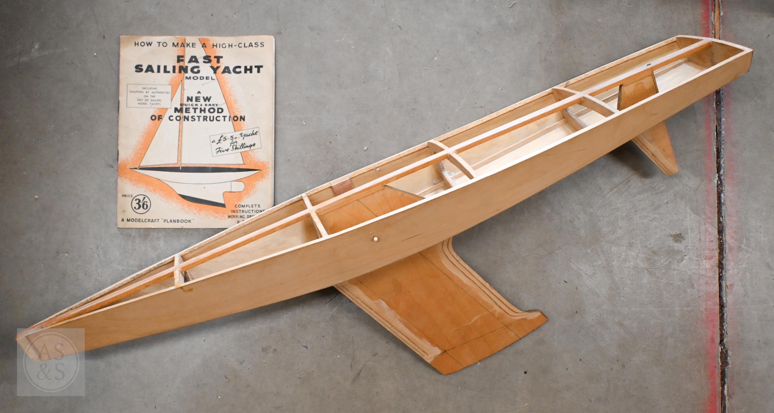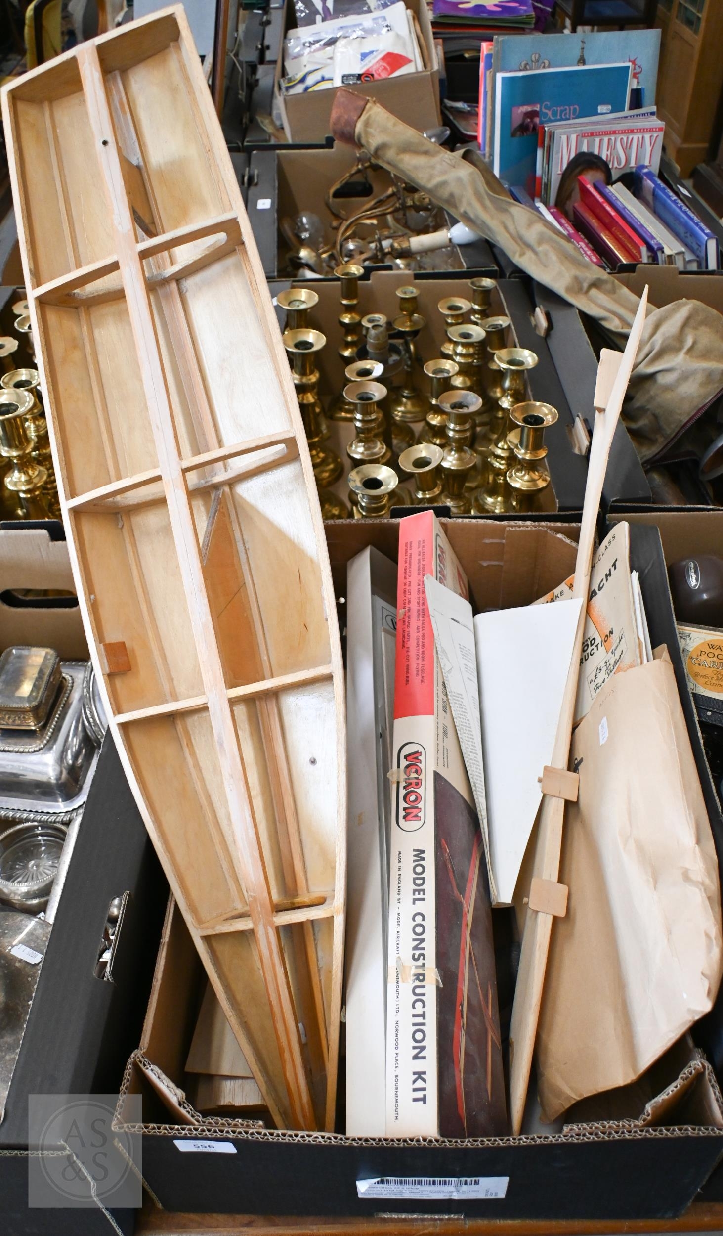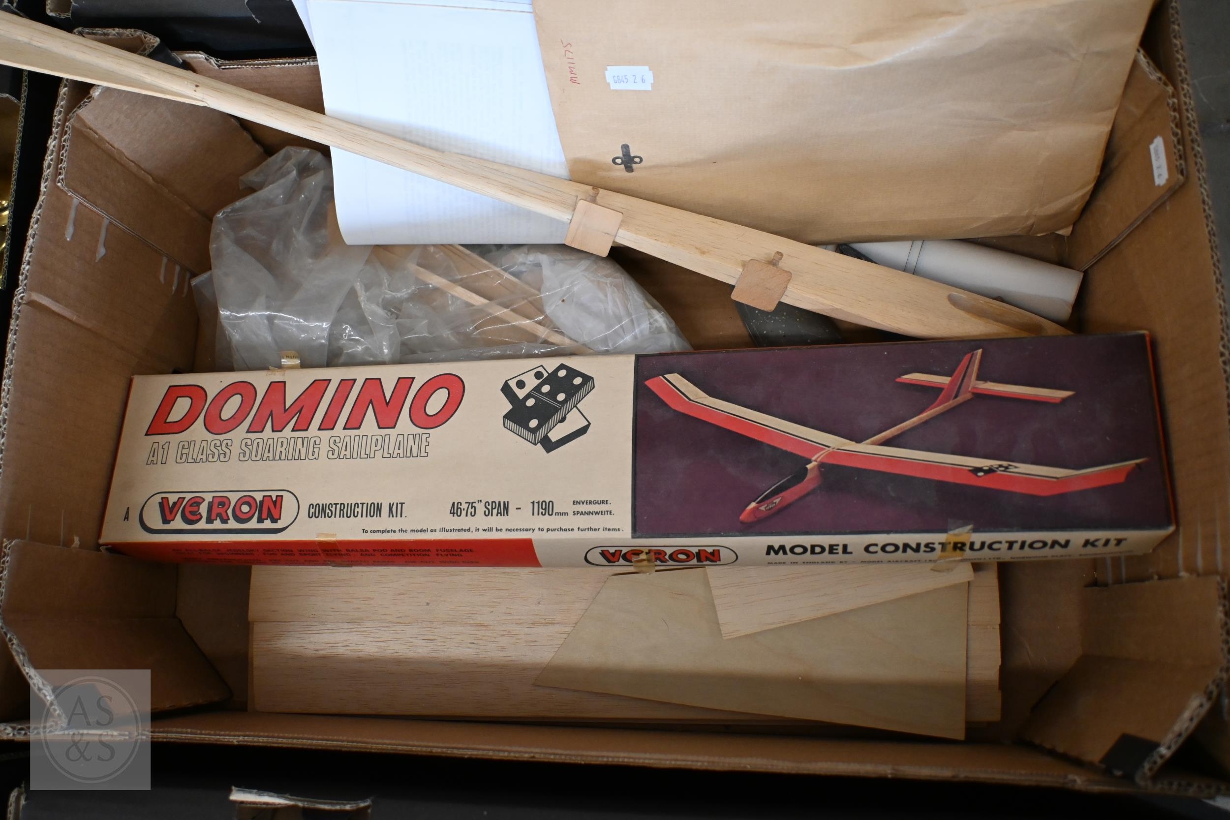 #A part-finished pond yacht hull, a glider kit, etc (box)
