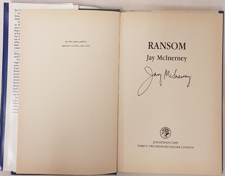 'Ransom' by Jay McInerney. Signed, first UK edition. Jonathan Cape, 1986.