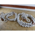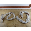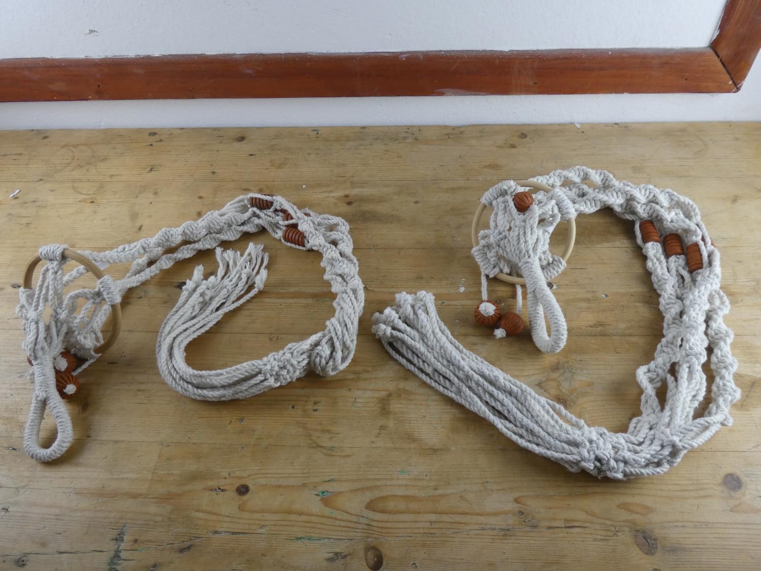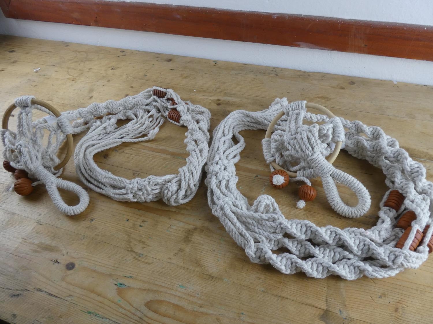 Two vintage macrame plant holders.