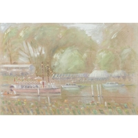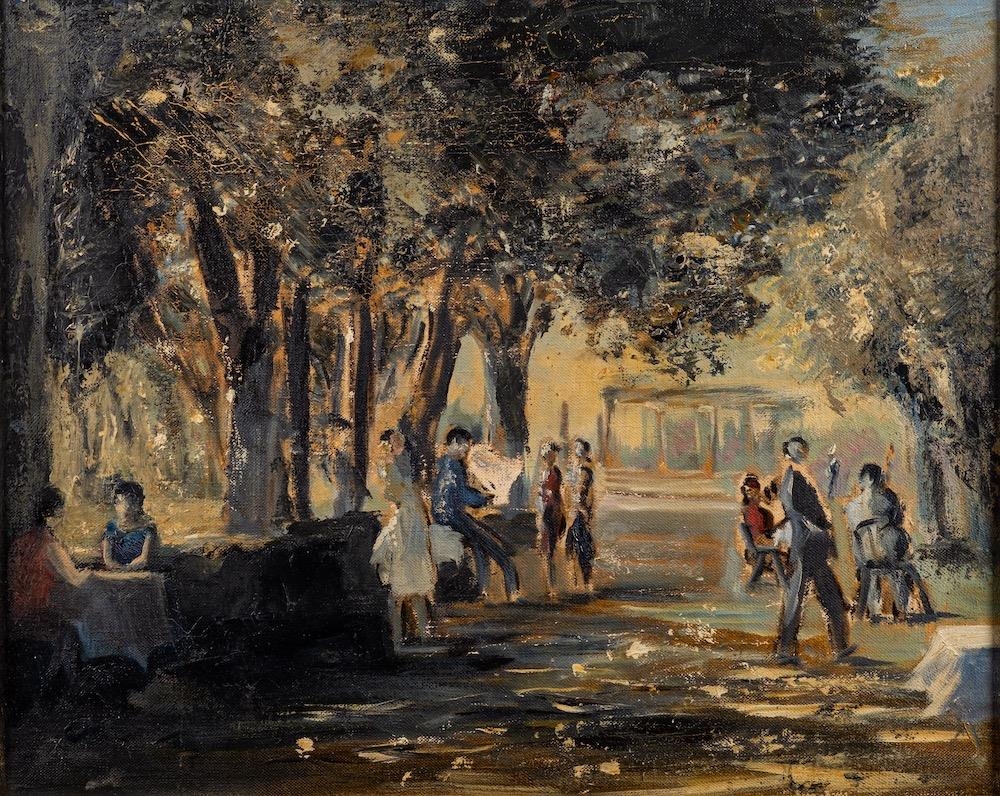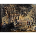 French School, 20th Century A sunlit park scene with figures and a pavilion beyond, probably a sketch Oil on canvas 39.5 x 49.5 cm