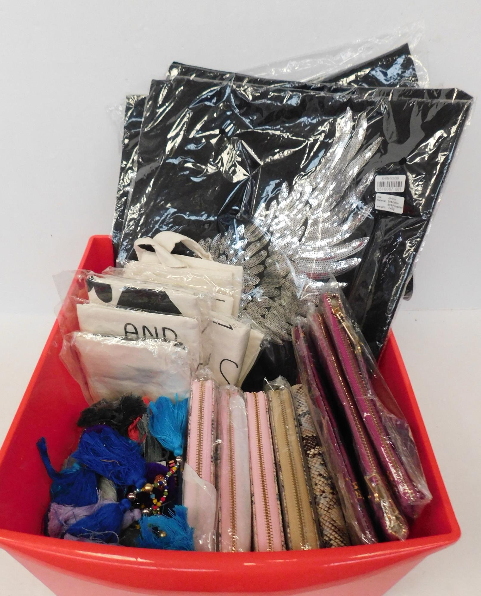 Selection of new embroidered tote bags, canvas tote bags, makeup bags etc.