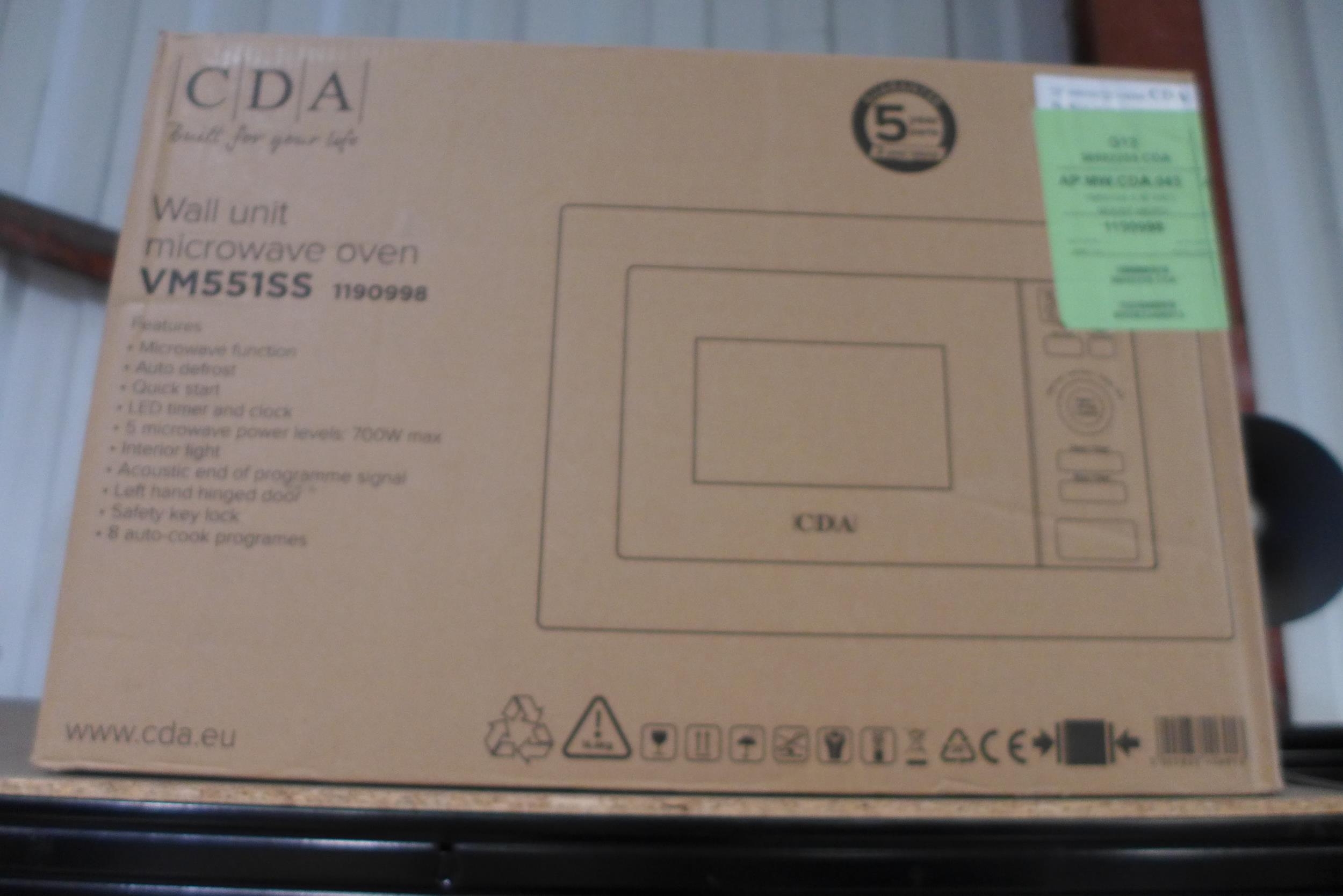 CDA Wall Microwave - Left Hinge Opening Model: VM551SS H382xW595xD300 Original RRP £241.67 inc VAT * This lot is subject to VAT