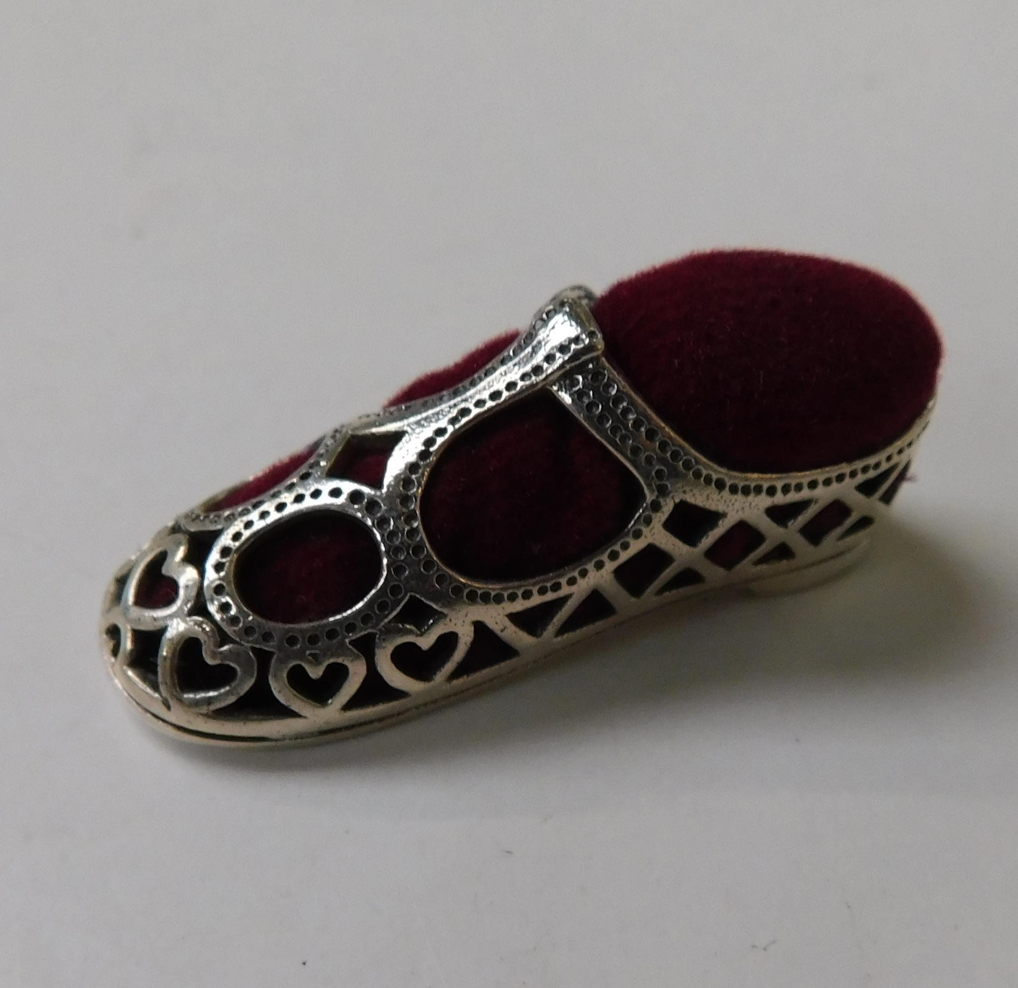 Silver shoe pin cushion