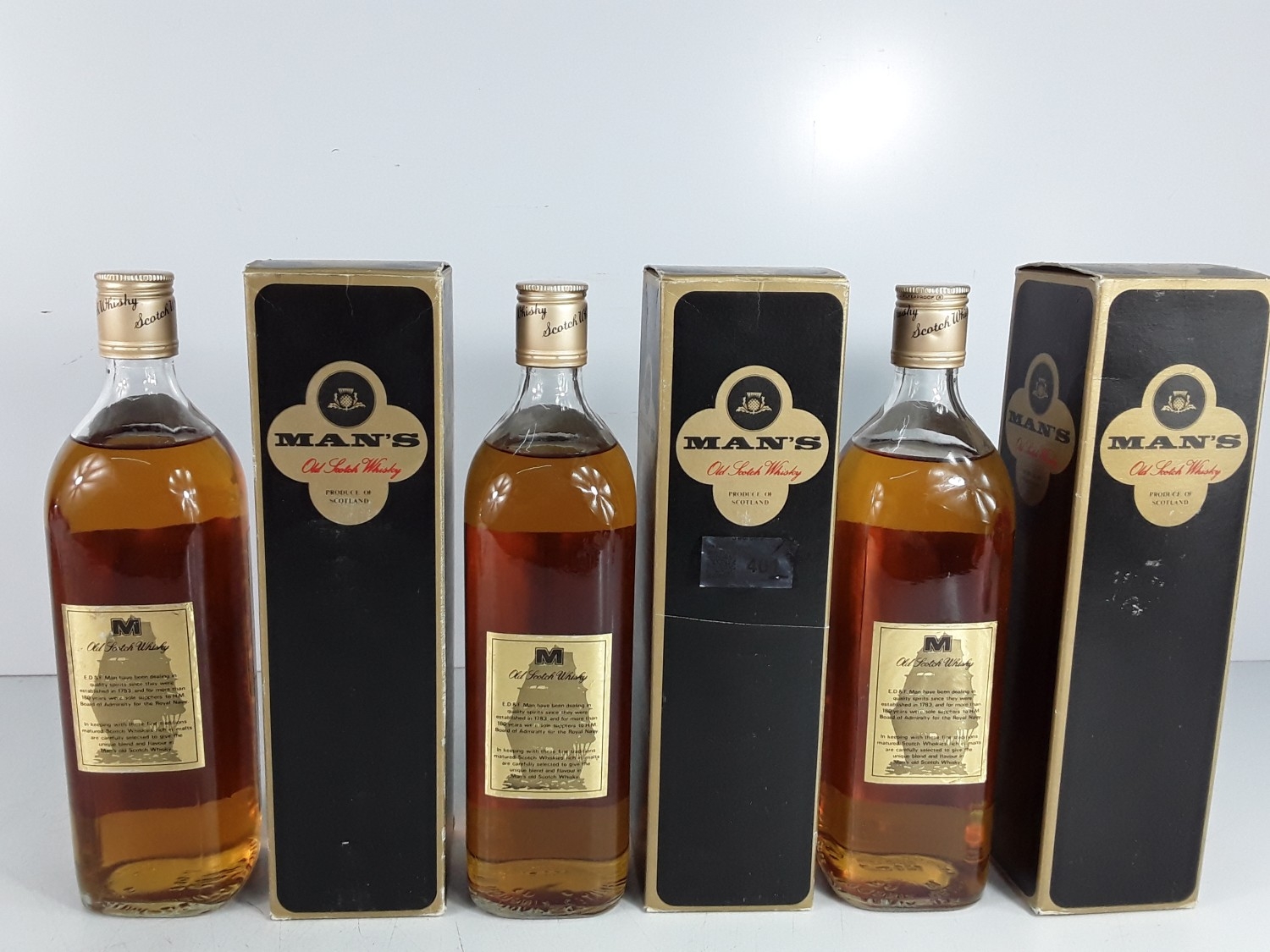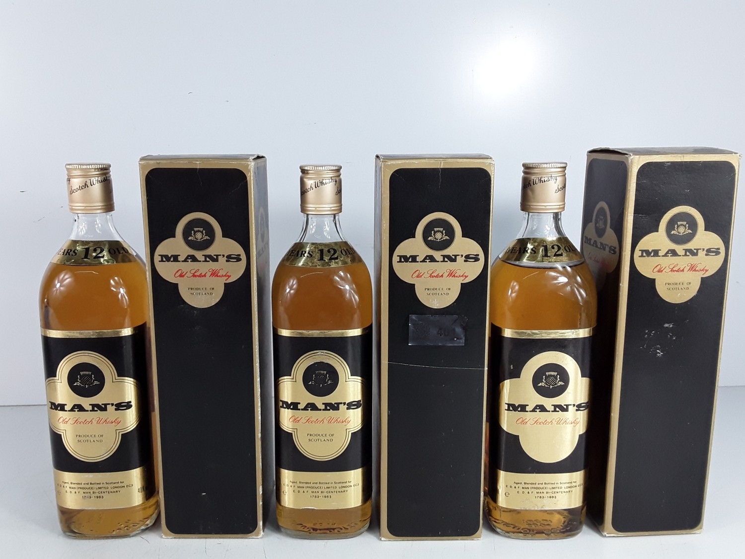 Three Boxed bts MAN'S Whisky 12 Year Old,75cl,40%,1980s