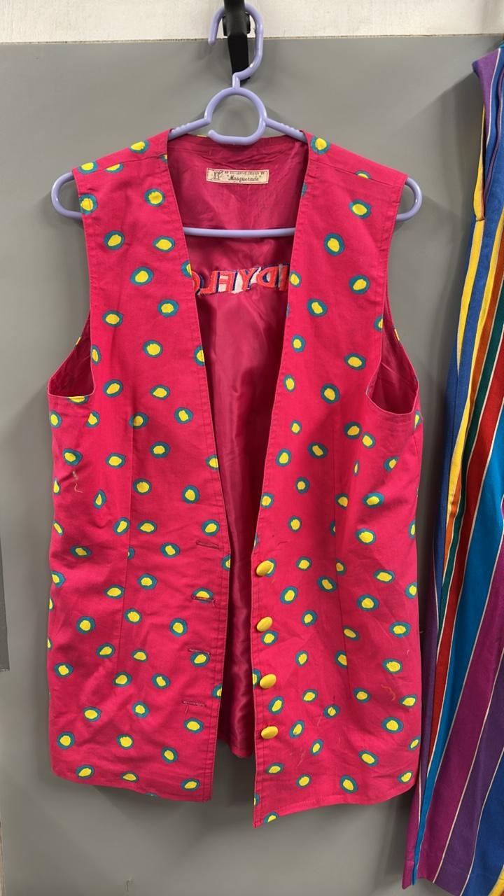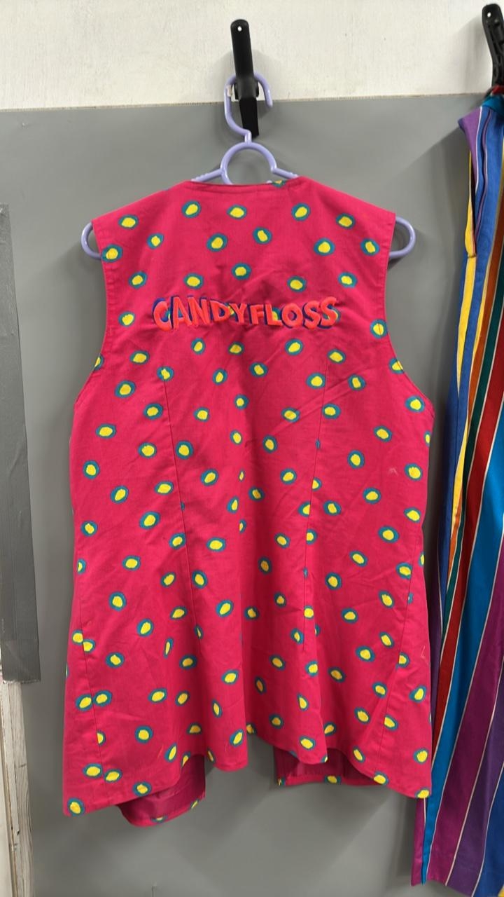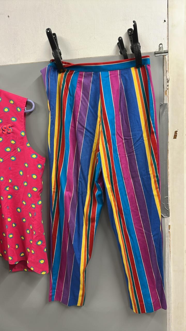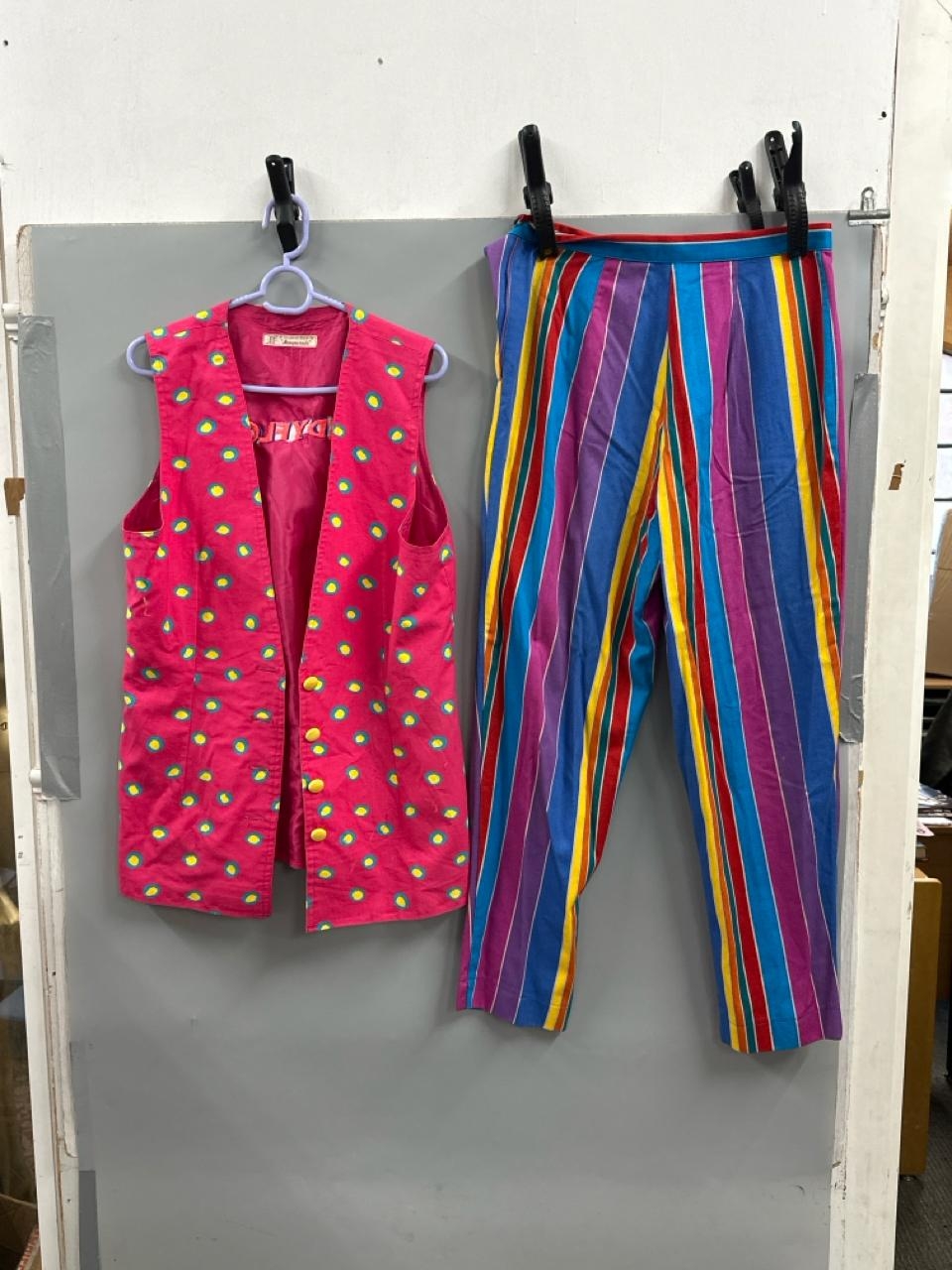 Stage worn clowns trousers and waistcoat. /Rail 4