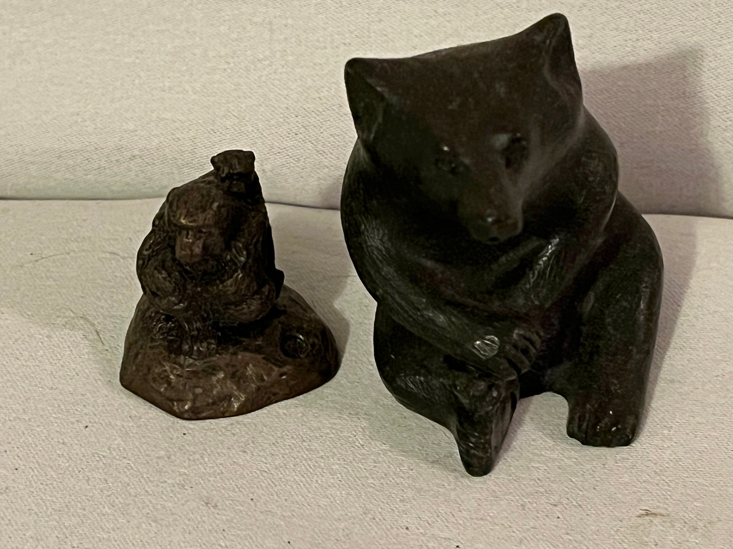 2 small bronze resign figurines