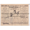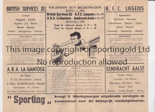R.F.C LIEGEOIS V BRITISH SERVICES XI 1945 Joint issue programme for the match in Belgium 1/4/1945 plus A.R.A. La Gantoise v Eendracht Aalst, slightly creased. Generally good