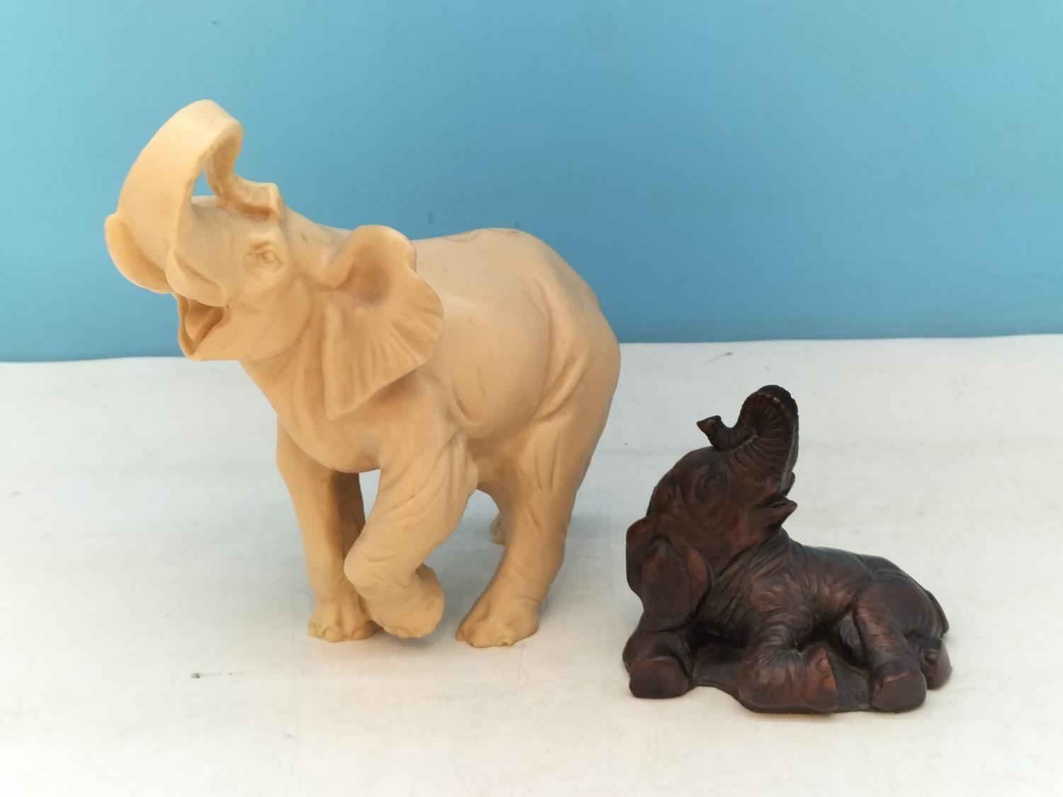 Resin Elephant Figures (2). Largest 19.5cm High, 18cm x 10cm.