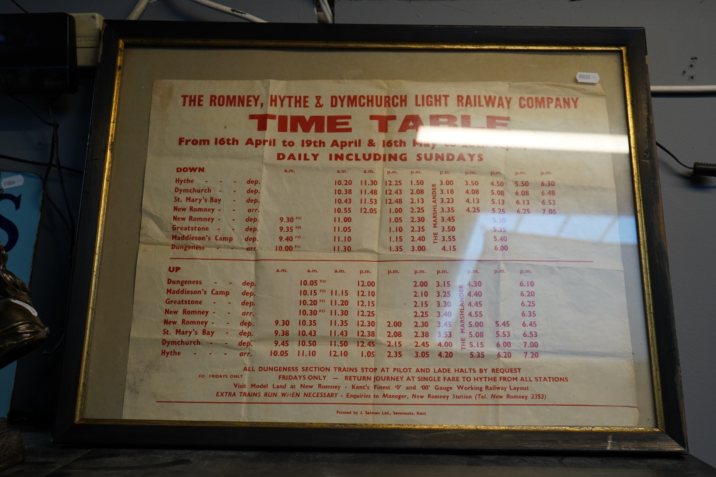 The Romney, Hythe & Dymchurch Light Railway Time Table April to September 1965 Paper Poster Timetable framed