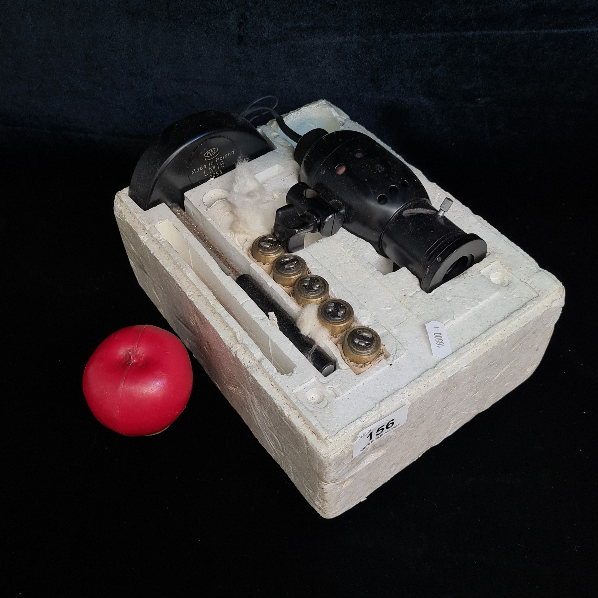 A vintage PZO LM 16 microscope lamp / illuminator manufactured by 'PZO POLAND'. Includes five screw in bulbs.