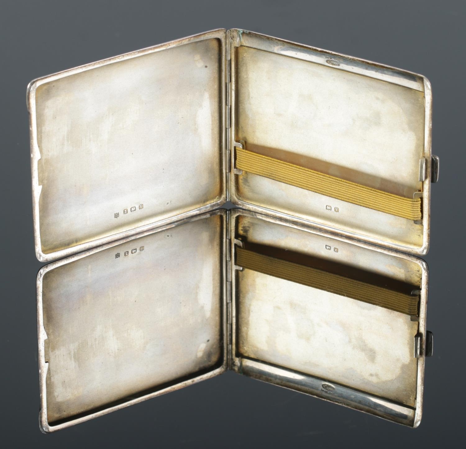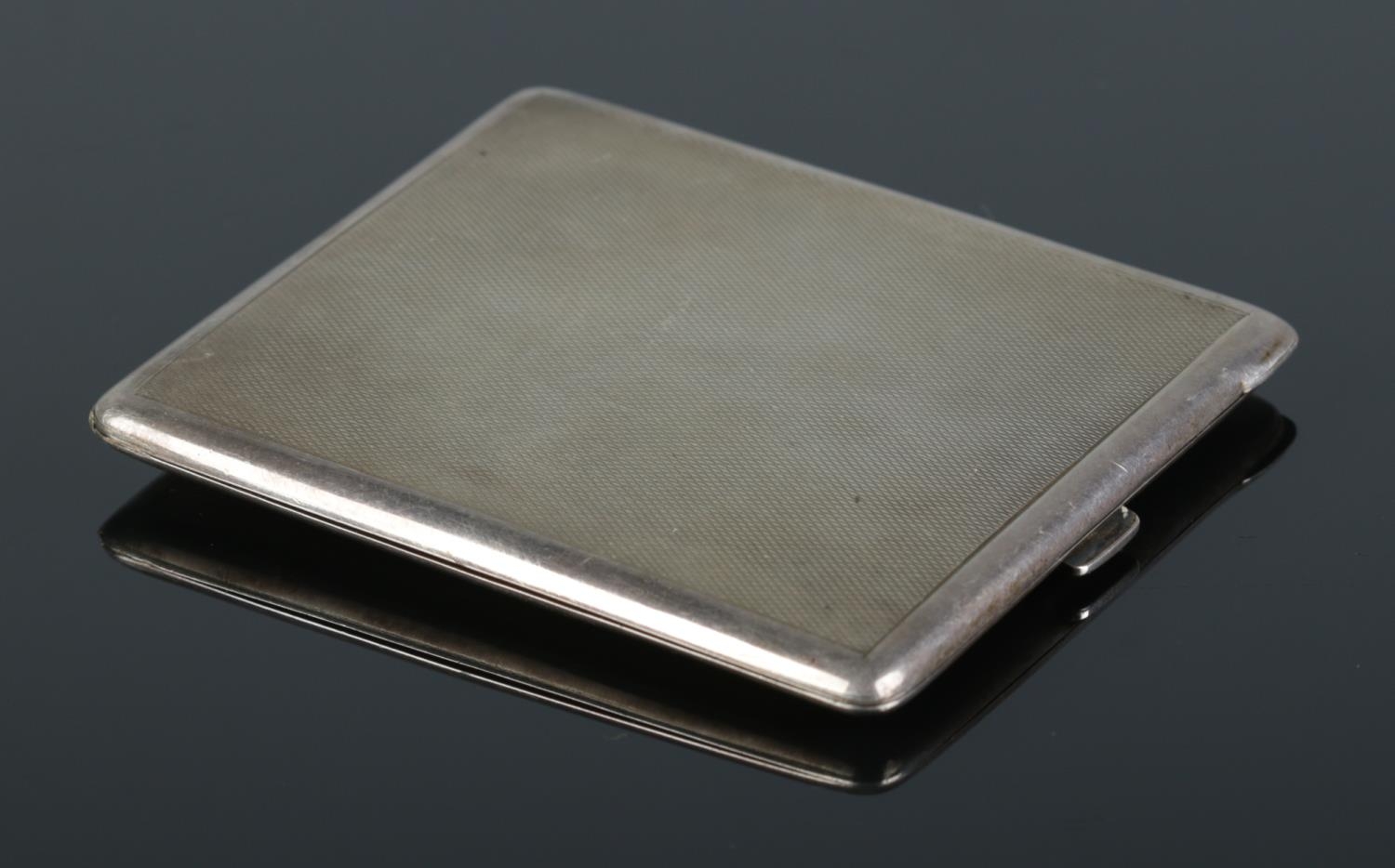 A George VI silver cigarette case, with engine turned detailing. Assayed for Birmingham, 1945, by Charles S Green & Co Ltd. Total weight: 133.3g