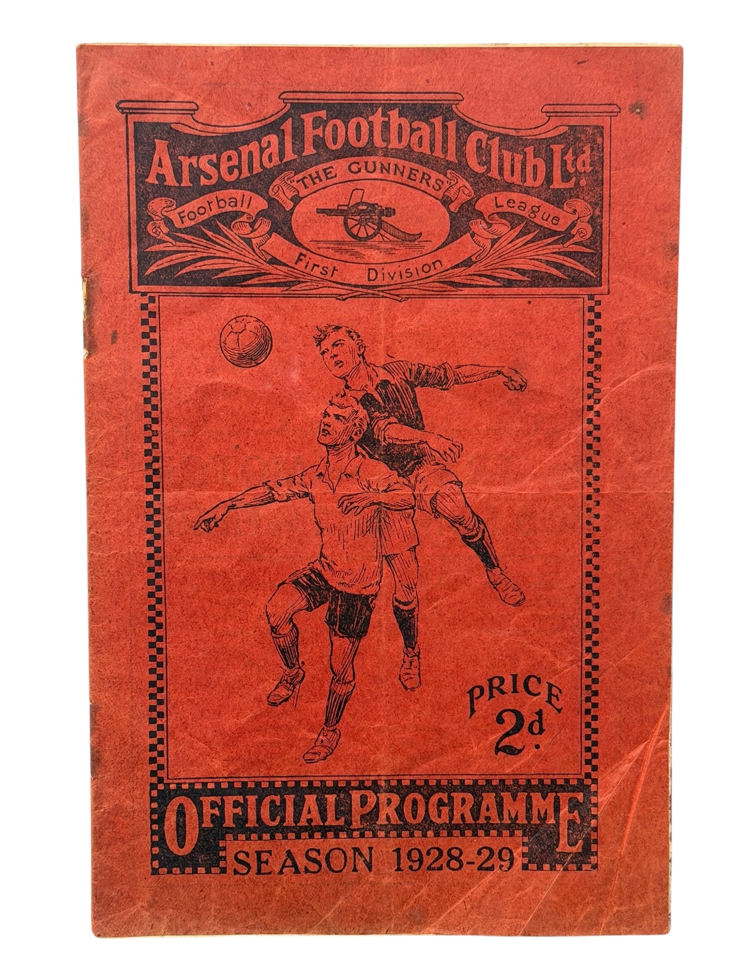 ARSENAL VERSUS DERBY COUNTY 1928/29 FOOTBALL PROGRAMME, 29/8/1928. RS REMOVED, MARKS, FOLDS.