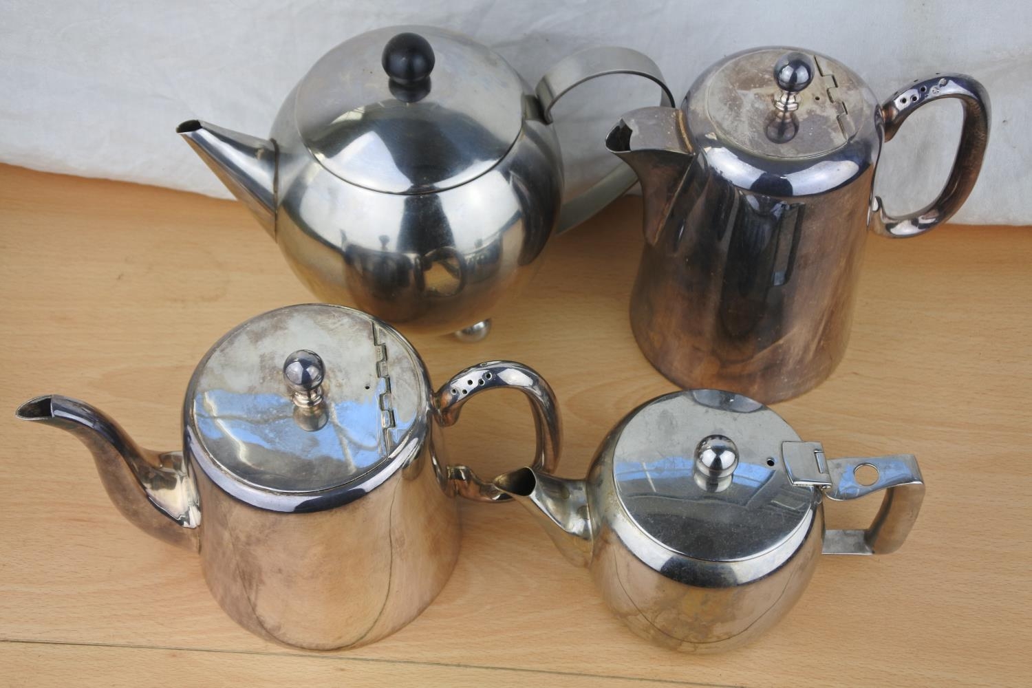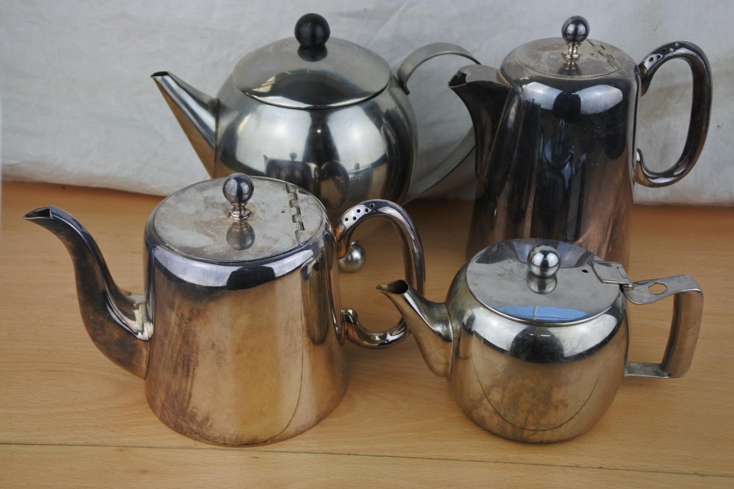 Four silver plated teapots.