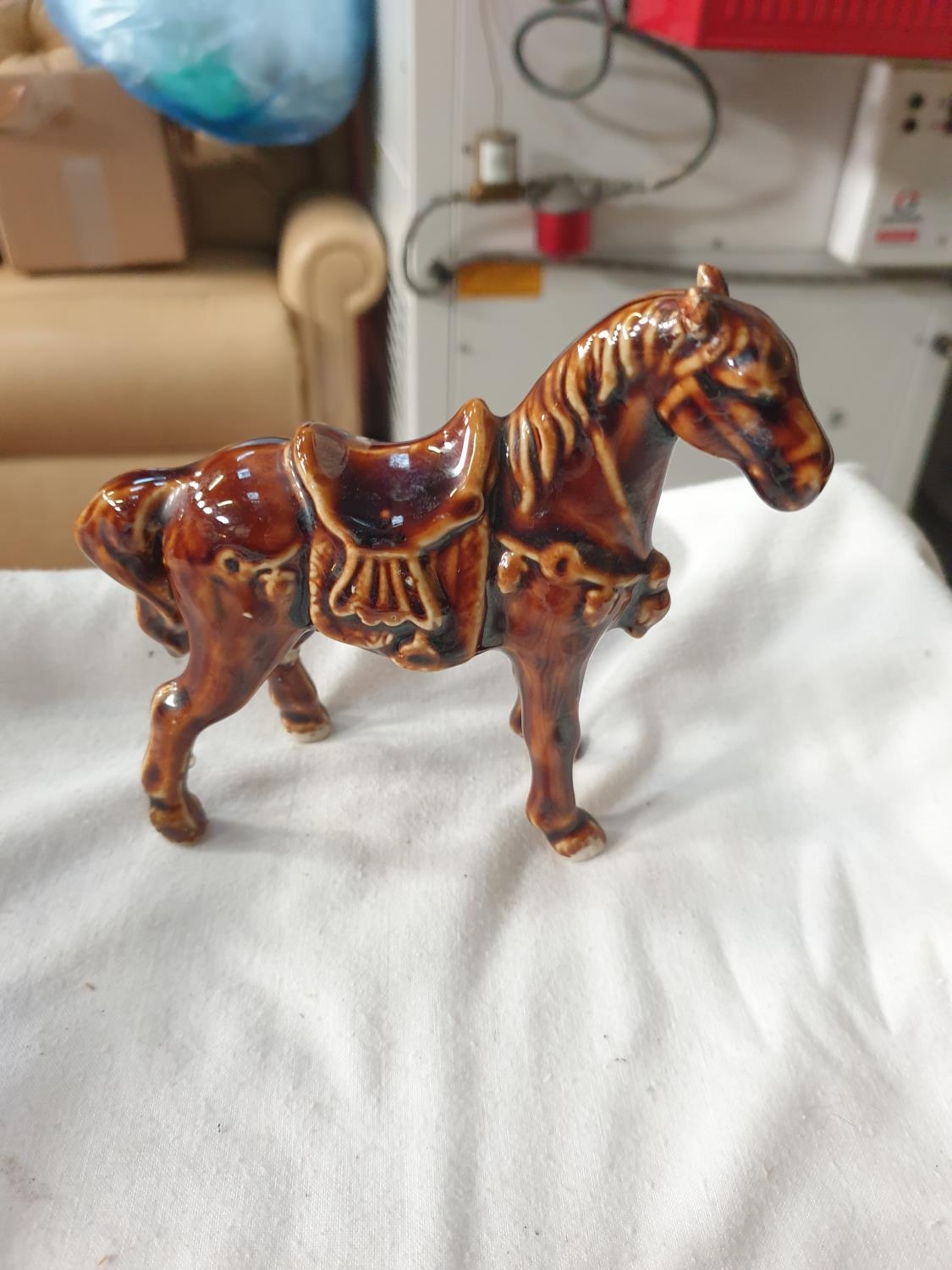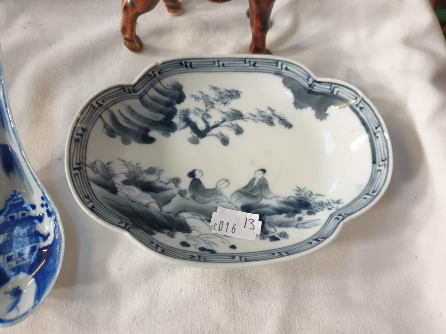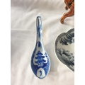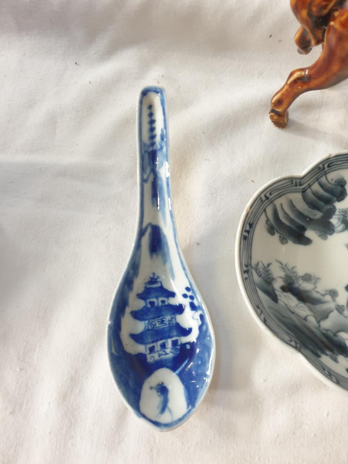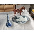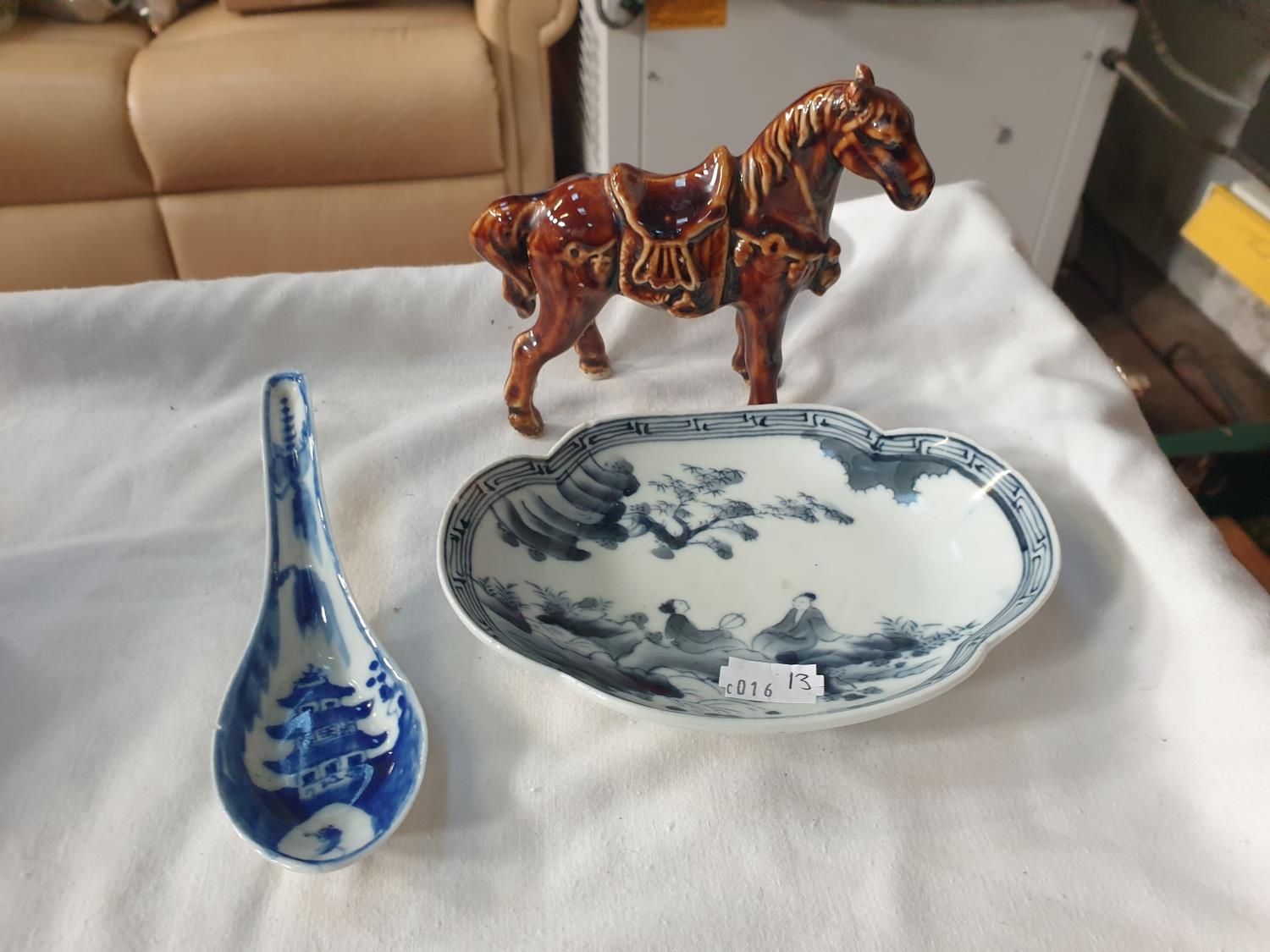 Chinese Blue & White Dish and Spoon along with Tang Reproduction Horse.