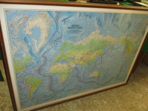 MAP OF WORLD OCEAN FLOOR, FRAMED AND GLAZED