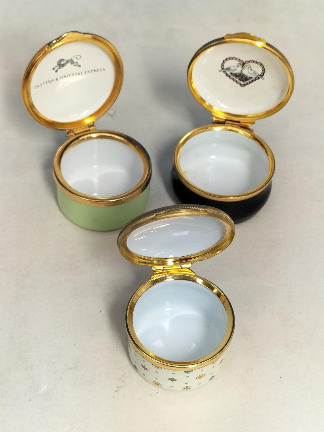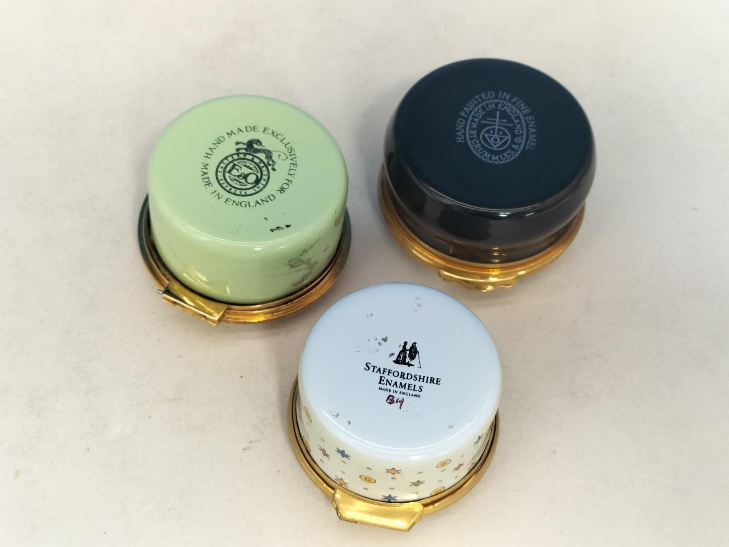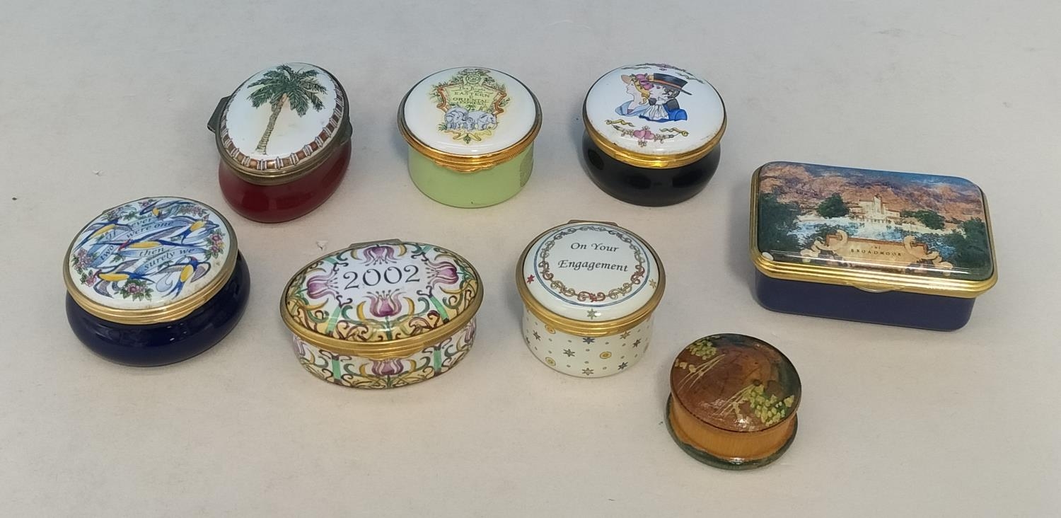 Collection of Enamelled Pill Pots to include Crummles, Ashley Copper, Staffordshire Enamels, etc.