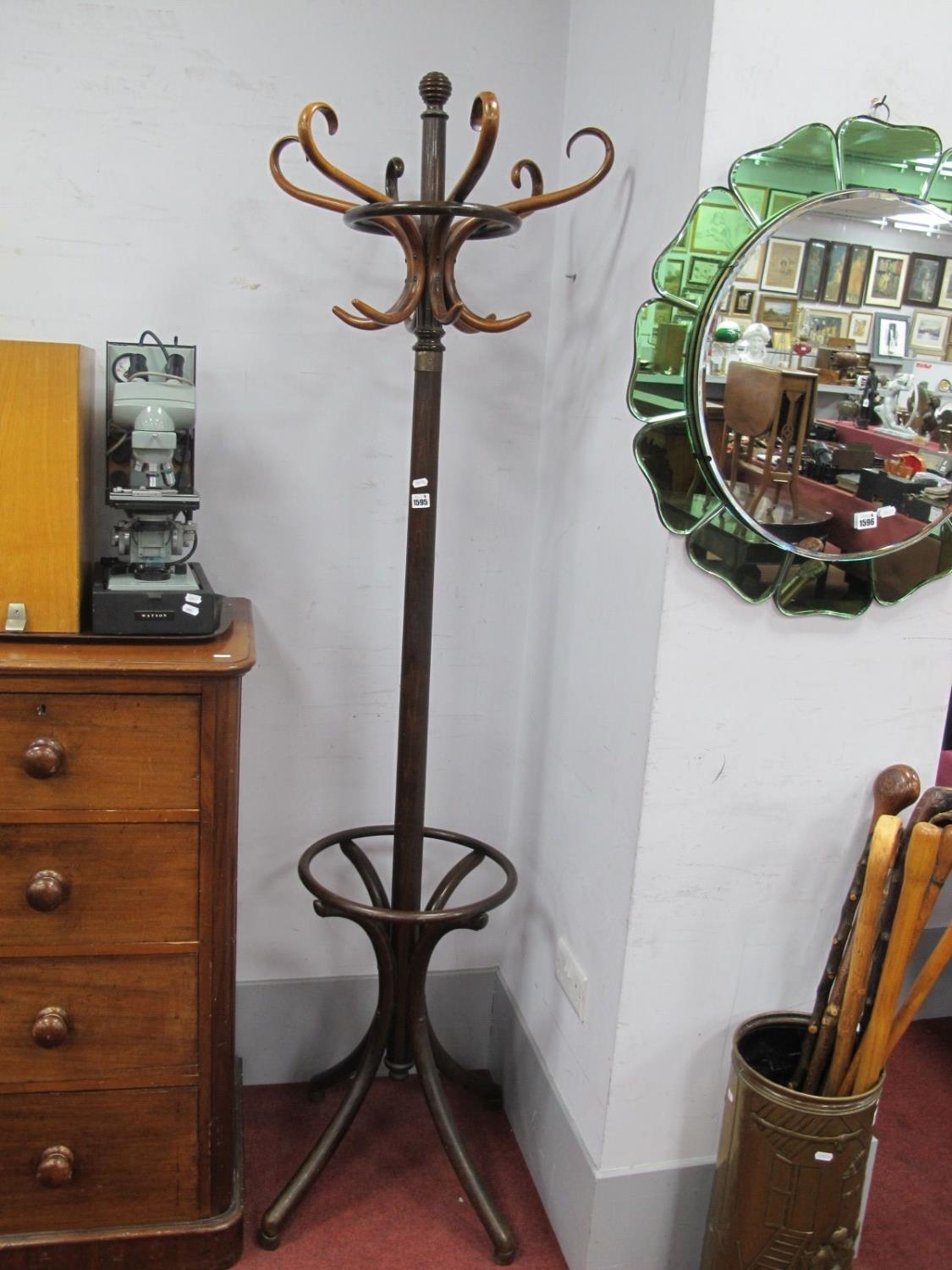 A XX Century Bentwood Coat/Hat Stand, with six S shaped hooks, on swept legs.