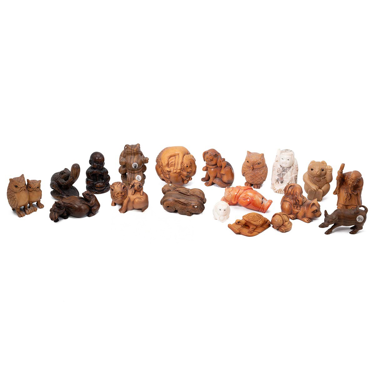 A collection of nineteen netsuke, of varying styles, including boxwood examples.