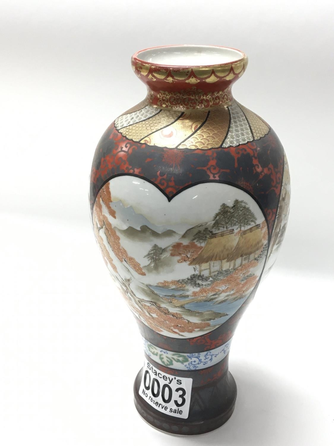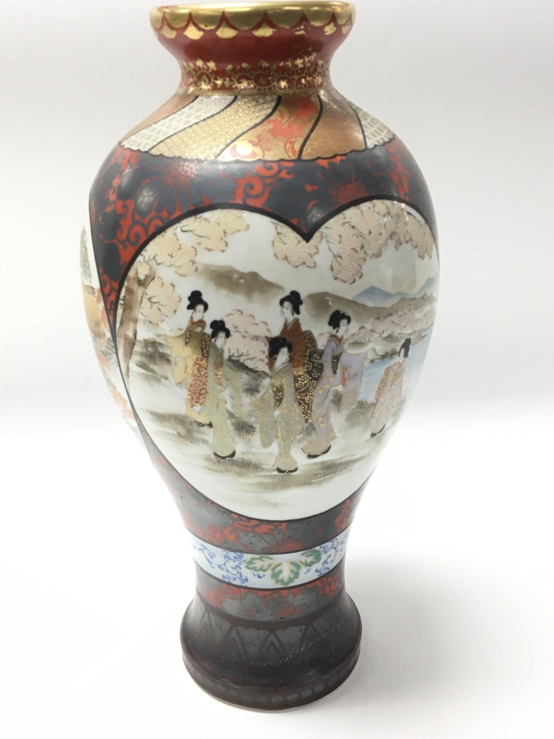 A late 19th century Japanese Kutani porcelain vase decorated with panels of figures. Hight 30cm no damage. Marks to the base. NO RESERVE.