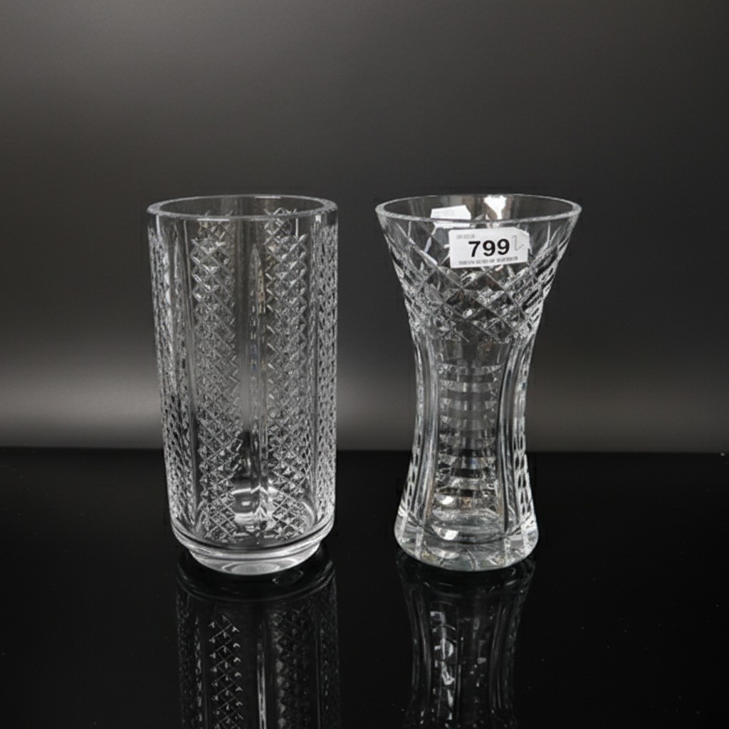 Two vintage Waterford cut crystal vases with diamond cut pattern work to body. Both in good condition.