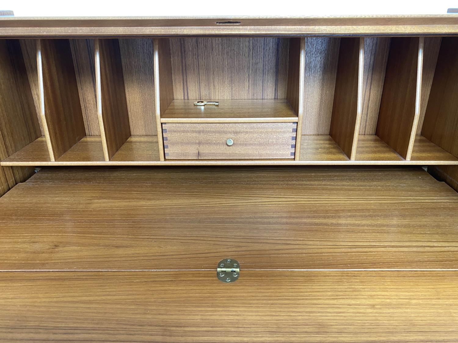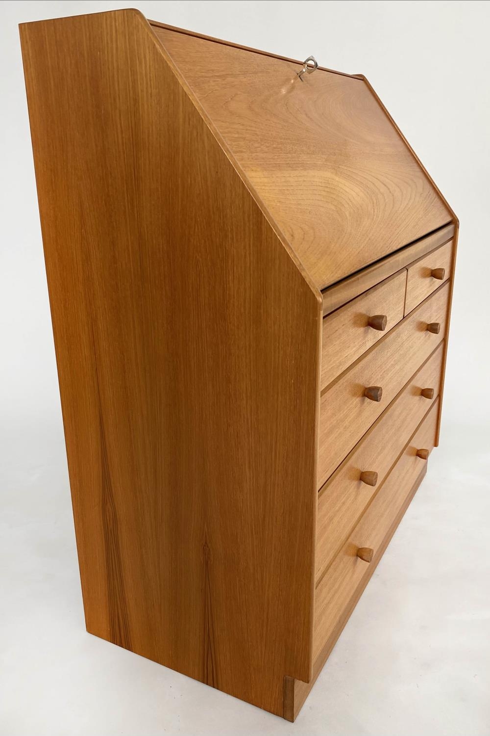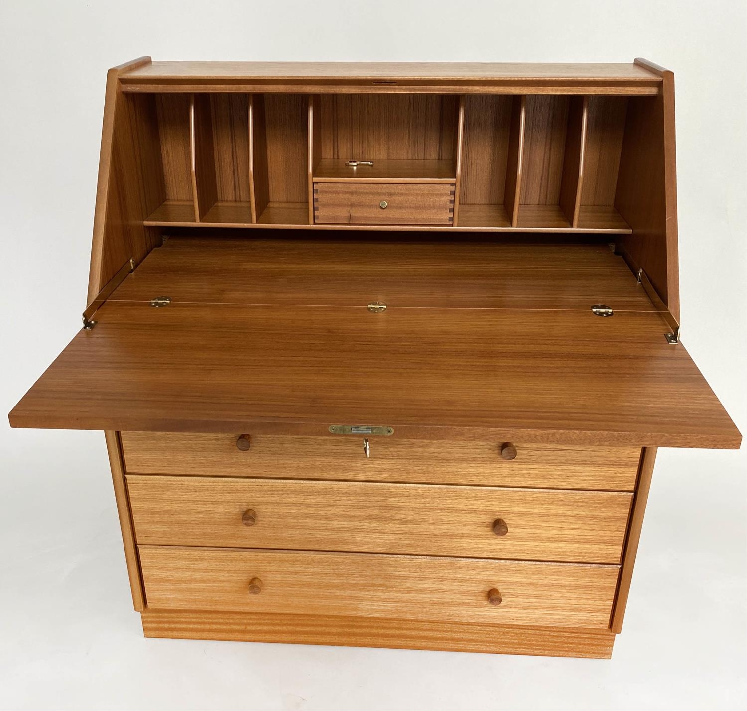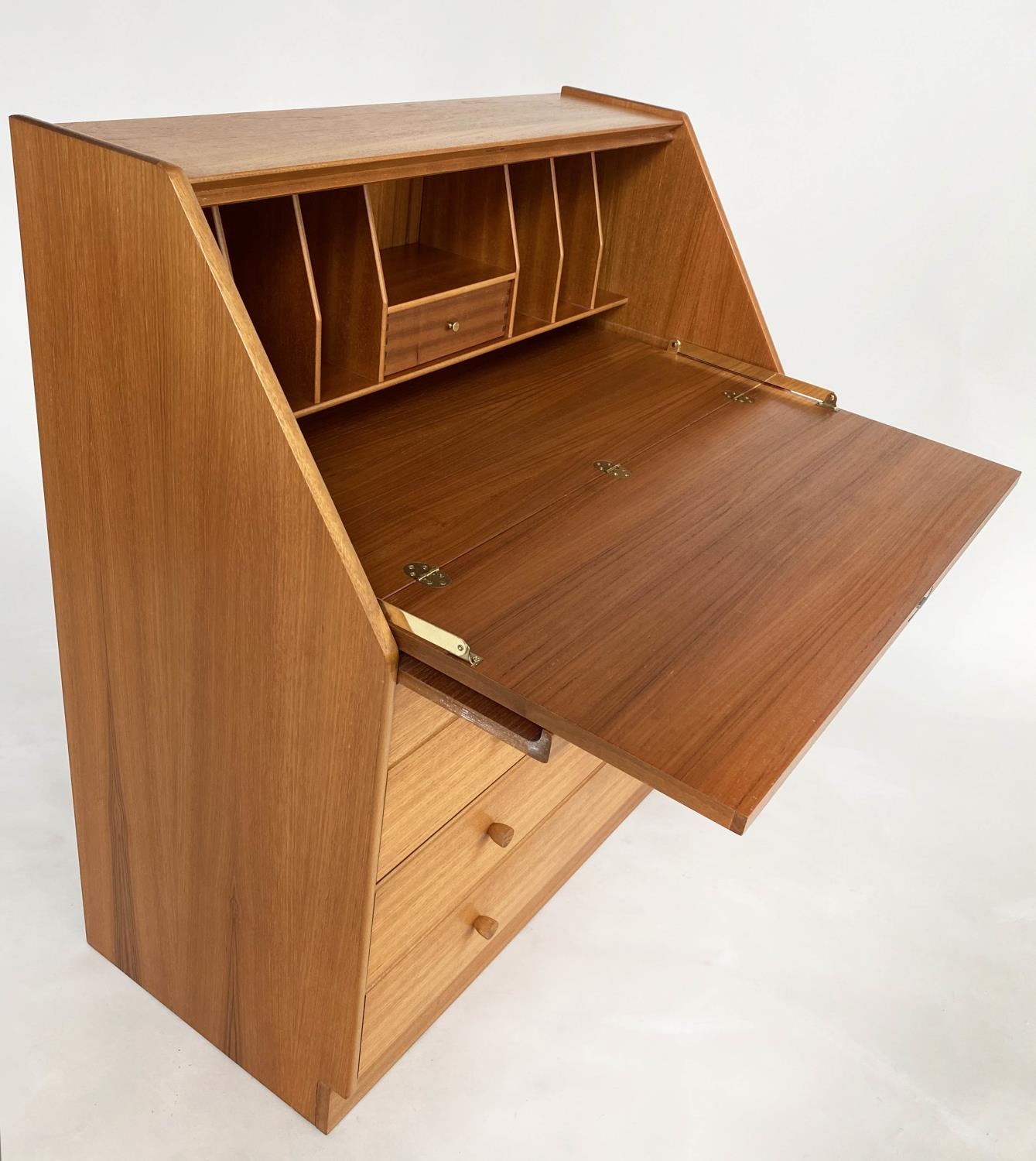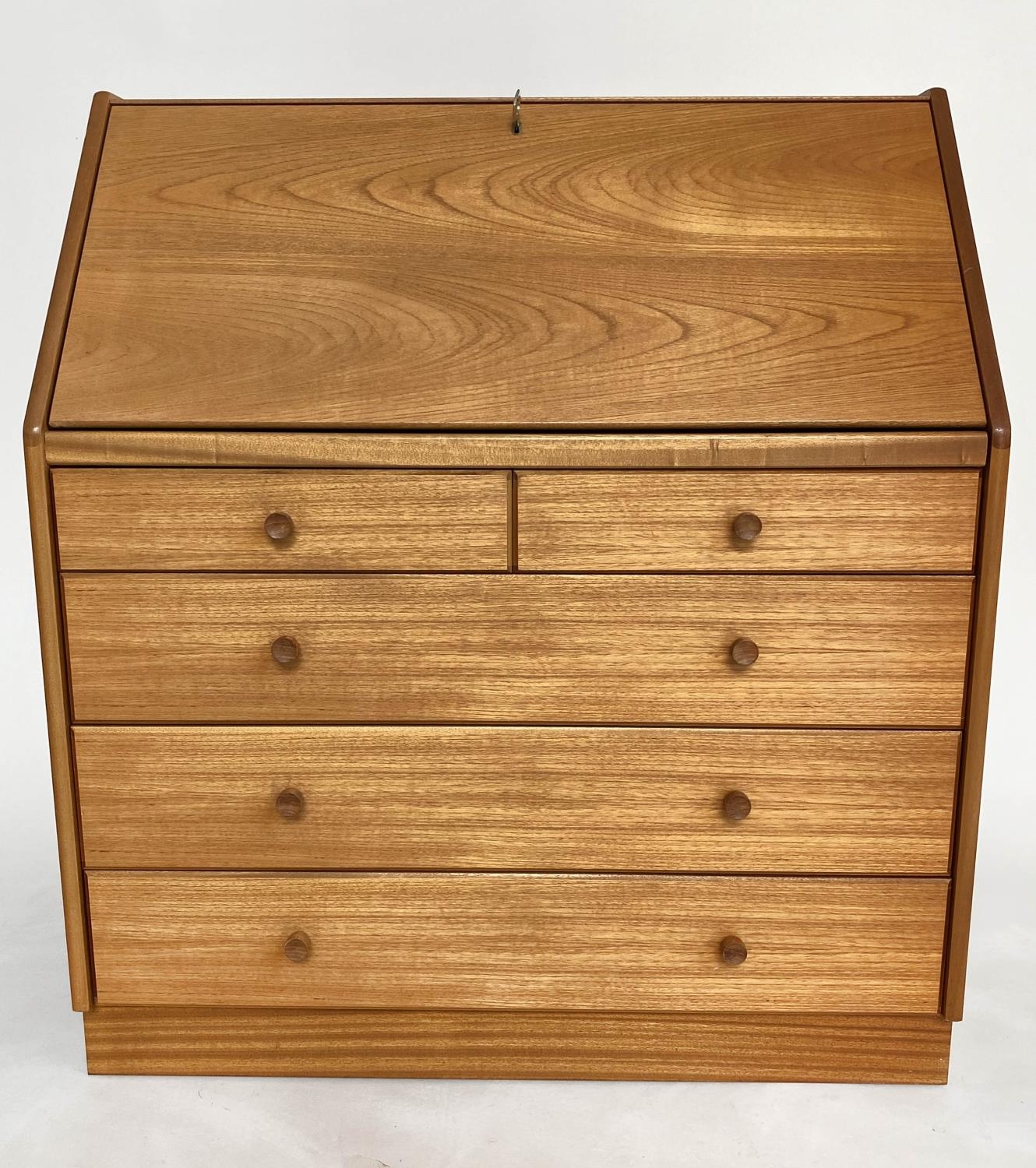 NATHAN TEAK BUREAU, 1970s teak, with fall front fitted interior, writing surface and four long drawers, 92cm x 104cm H x 46cm.