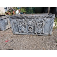 Lead Planter with details to side. 51x25x28cm